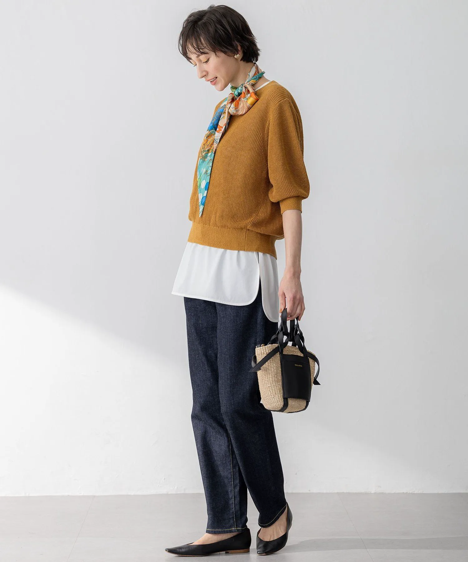Это изделие изготовлено из 100% льна, с использованием только лучшего льна из региона Нормандия во Франции. Пряжа, производимая в Японии, изготавливается с использованием уникального метода прядения льна, называемого мокрым прядением, и окрашивается с помощью уникального процесса окрашивания, создающего текстуру с минимальным ворсом и плотной, блестящей поверхностью.