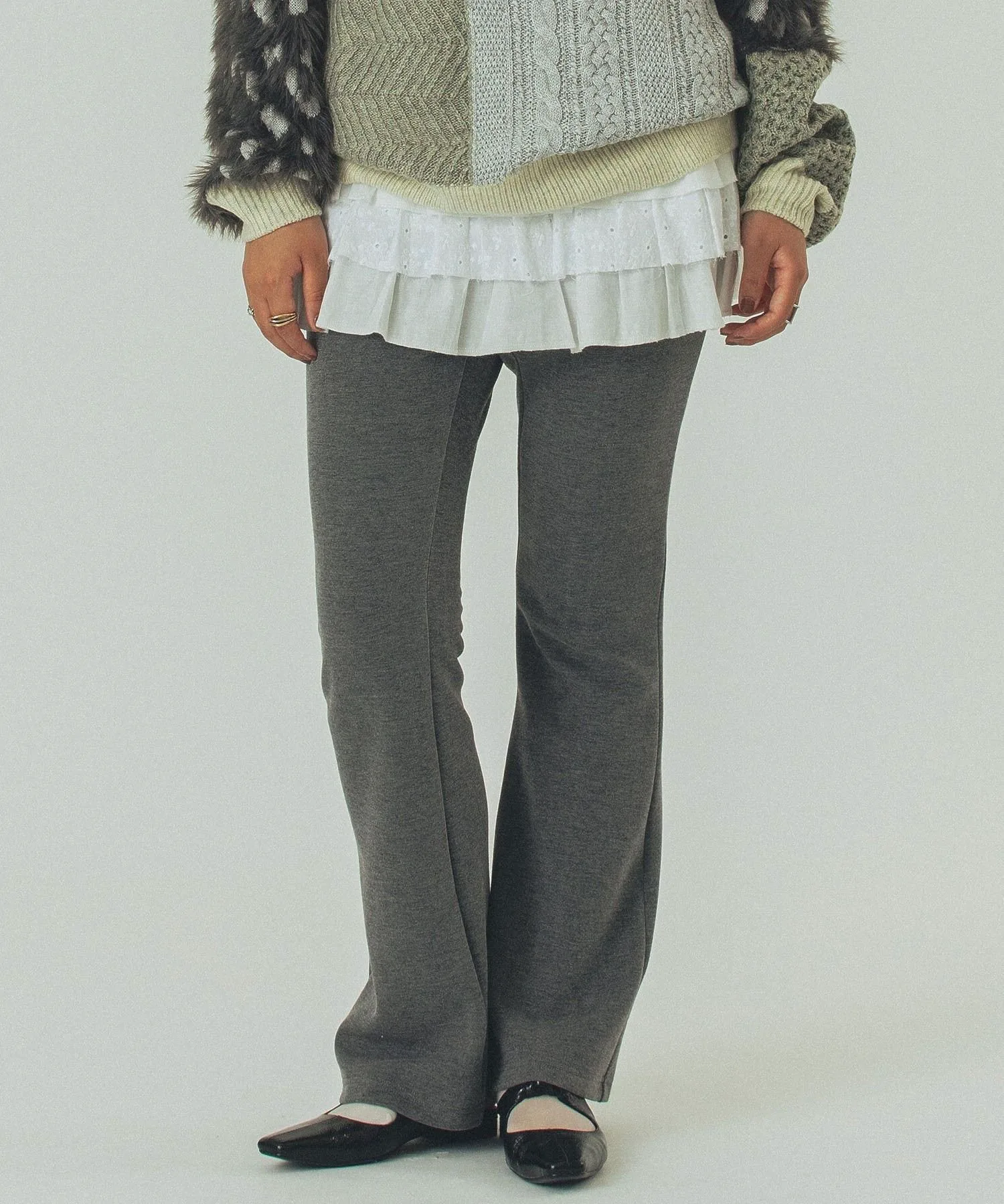 ・Расклешенная линия, расширяющаяся к низу, создает эффект удлинения ног.