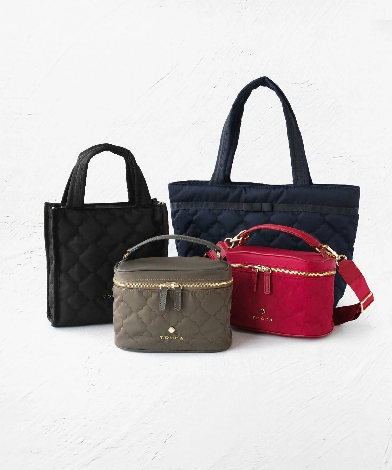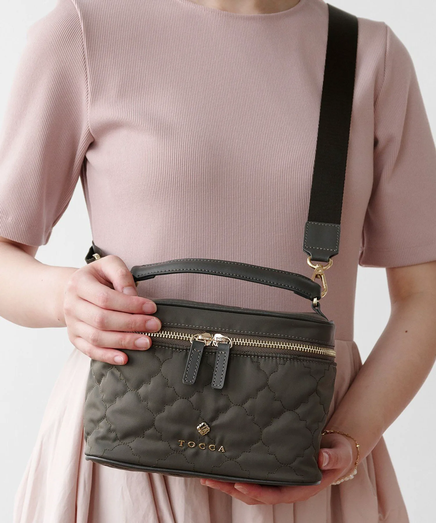 Эта косметичка украшена культовым мотивом клевера и имеет стеганую текстуру, создавая слегка милый и современный образ.