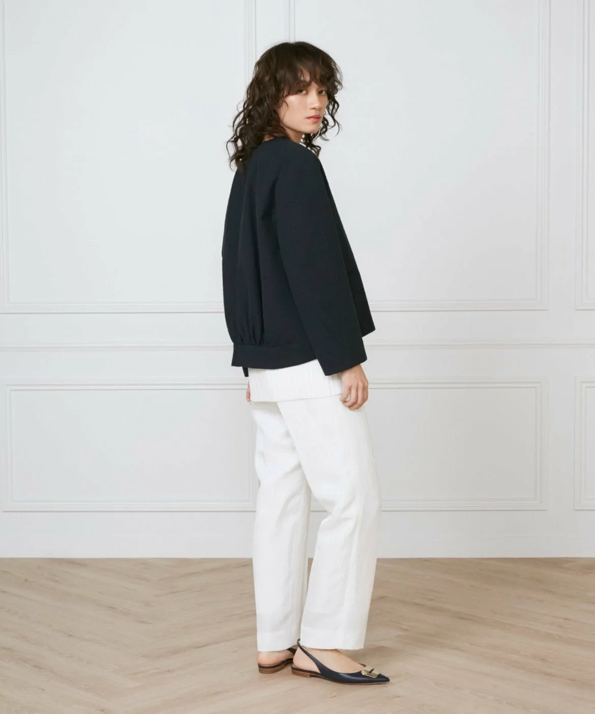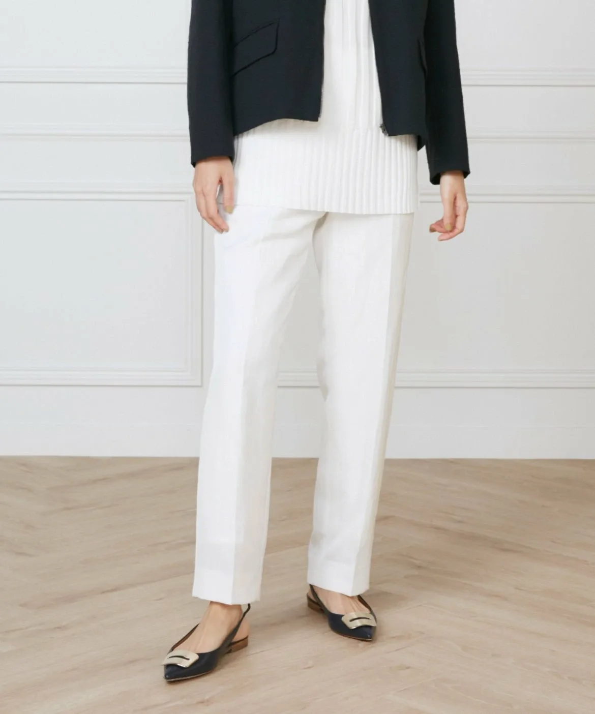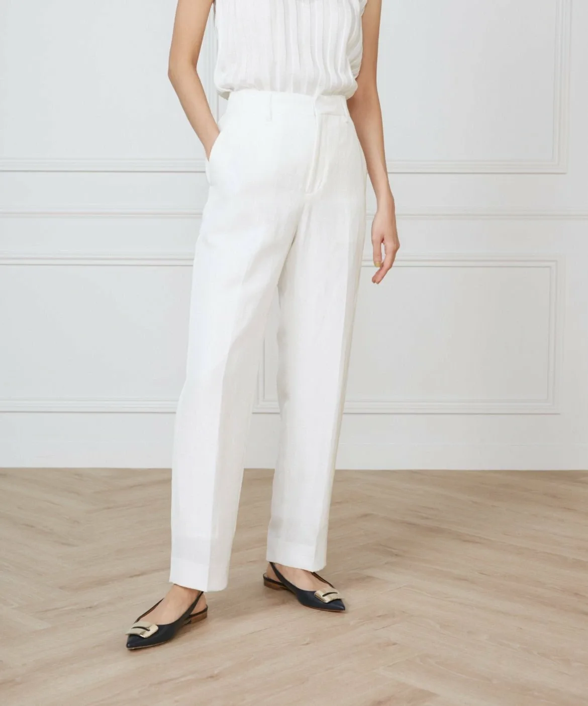 Прямой силуэт ниспадает до самого низа, создавая чистый, но расслабленный баланс для взрослого образа. Идеальное положение талии позволяет выглядеть гармонично как заправленным, так и навыпуск. Задняя часть пояса выполнена из эластичного материала, который уменьшает количество выпирающих элементов одежды при заправке. Эта вещь добавит вашему образу нотку элегантности.