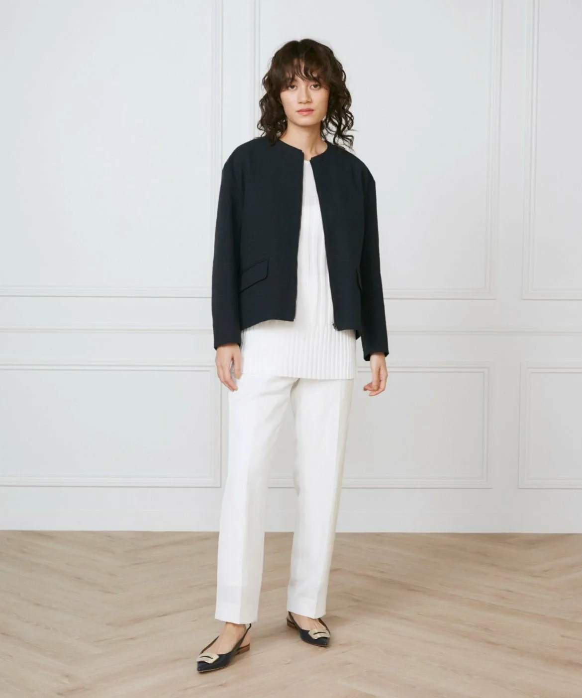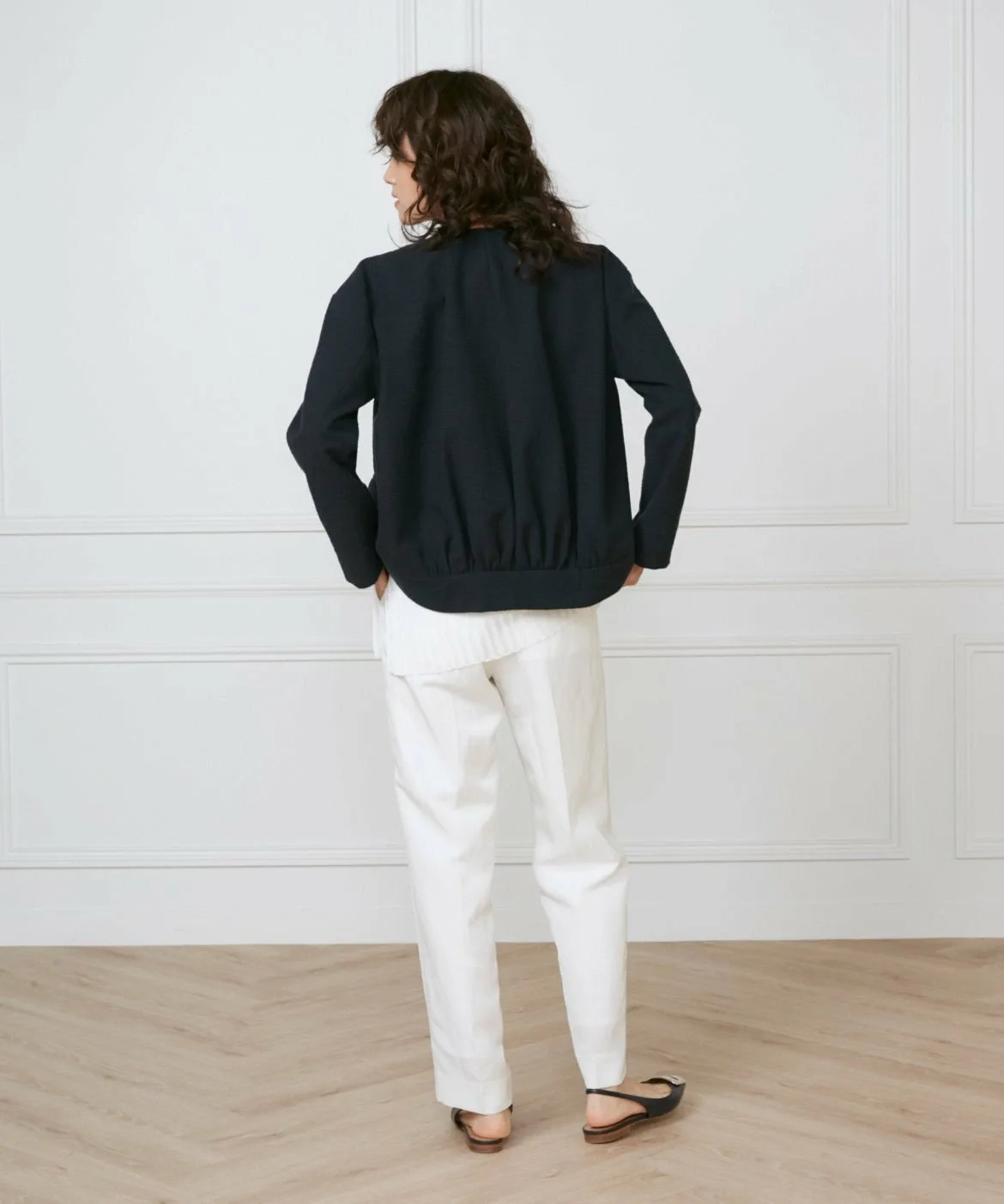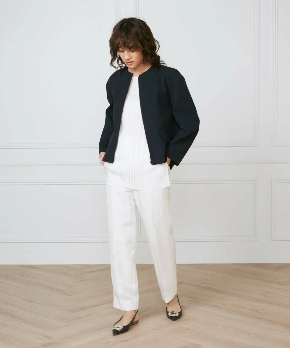 Прямой силуэт ниспадает до самого низа, создавая чистый, но расслабленный баланс для взрослого образа. Идеальное положение талии позволяет выглядеть гармонично как заправленным, так и навыпуск. Задняя часть пояса выполнена из эластичного материала, который уменьшает количество выпирающих элементов одежды при заправке. Эта вещь добавит вашему образу нотку элегантности.