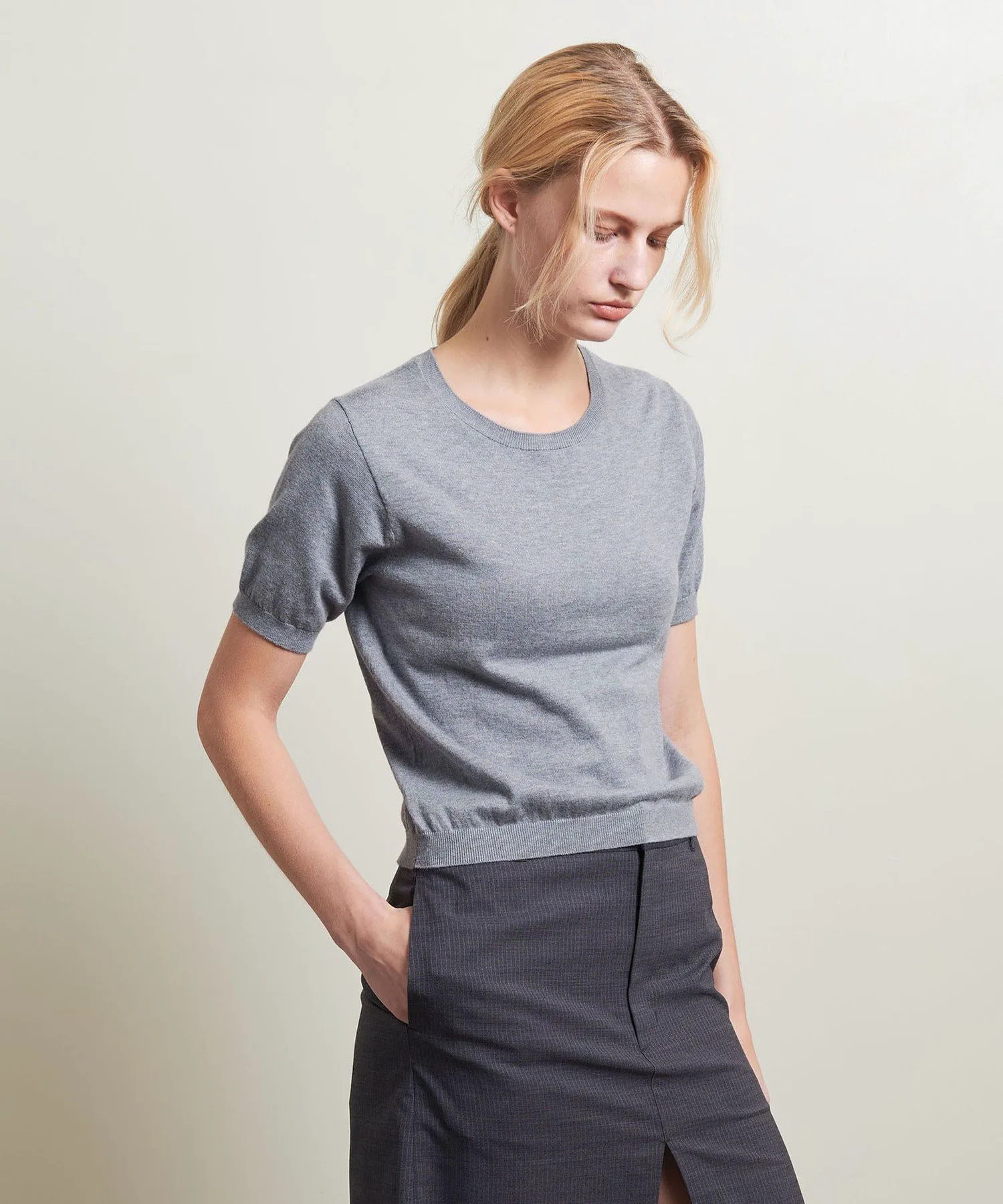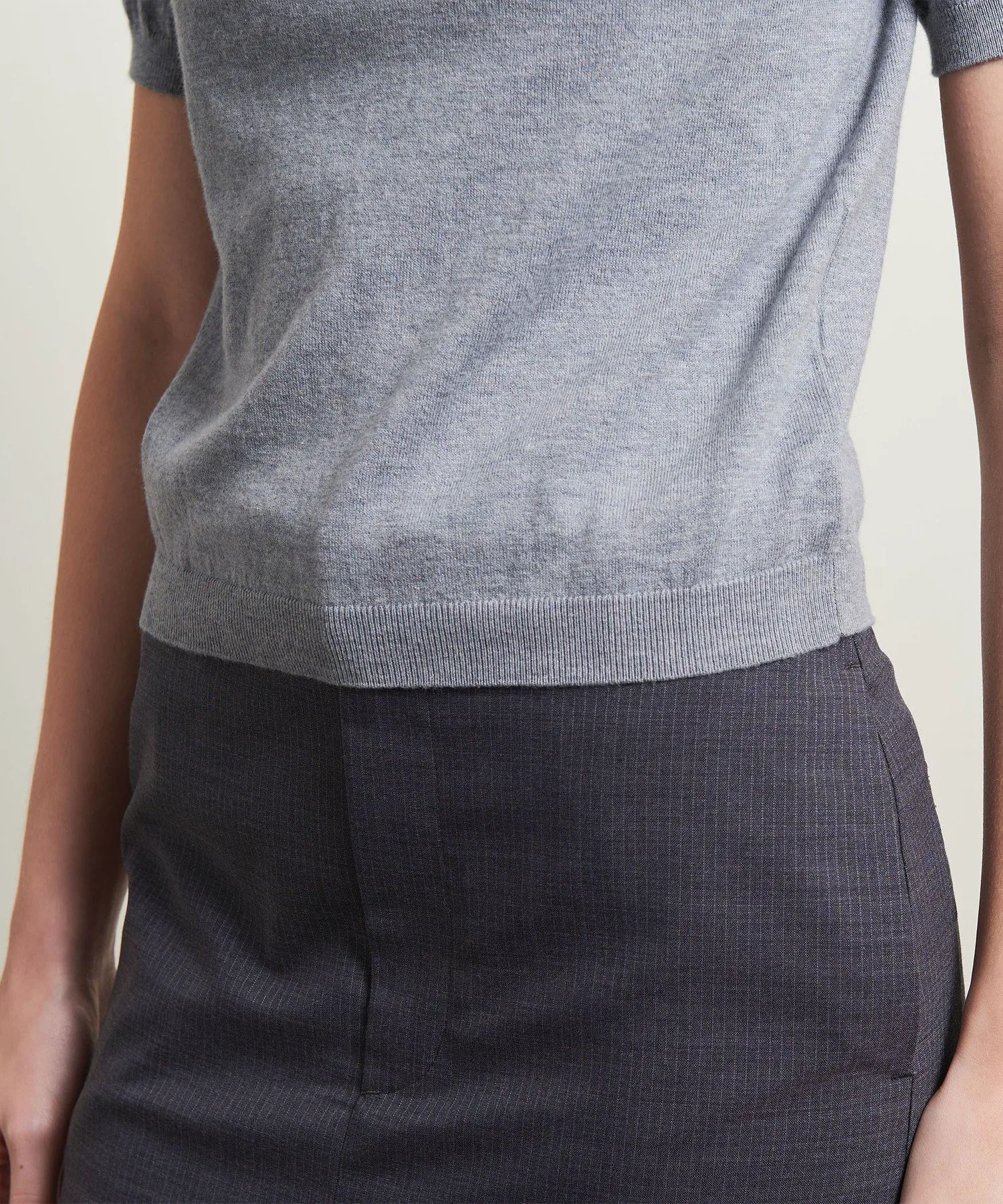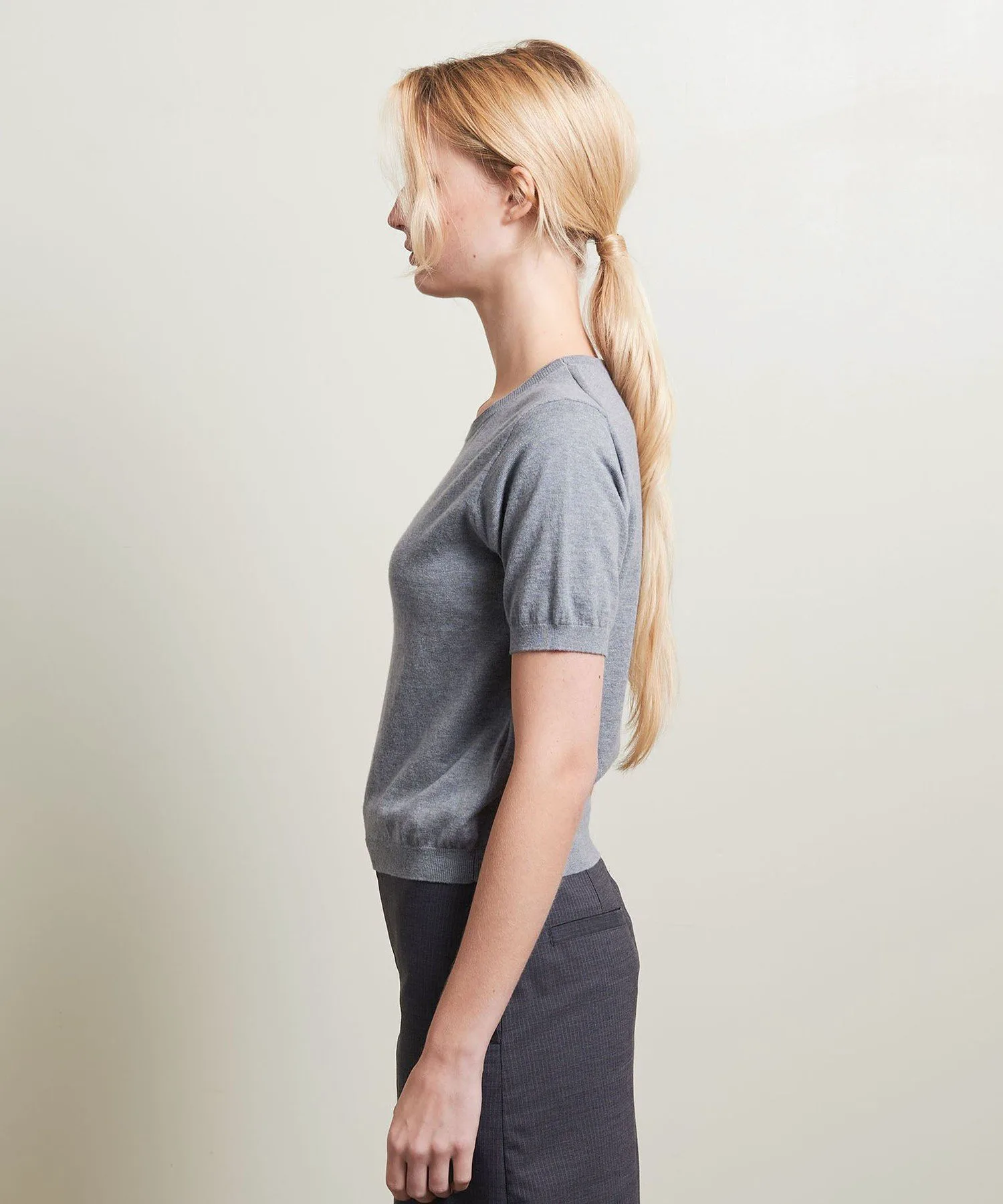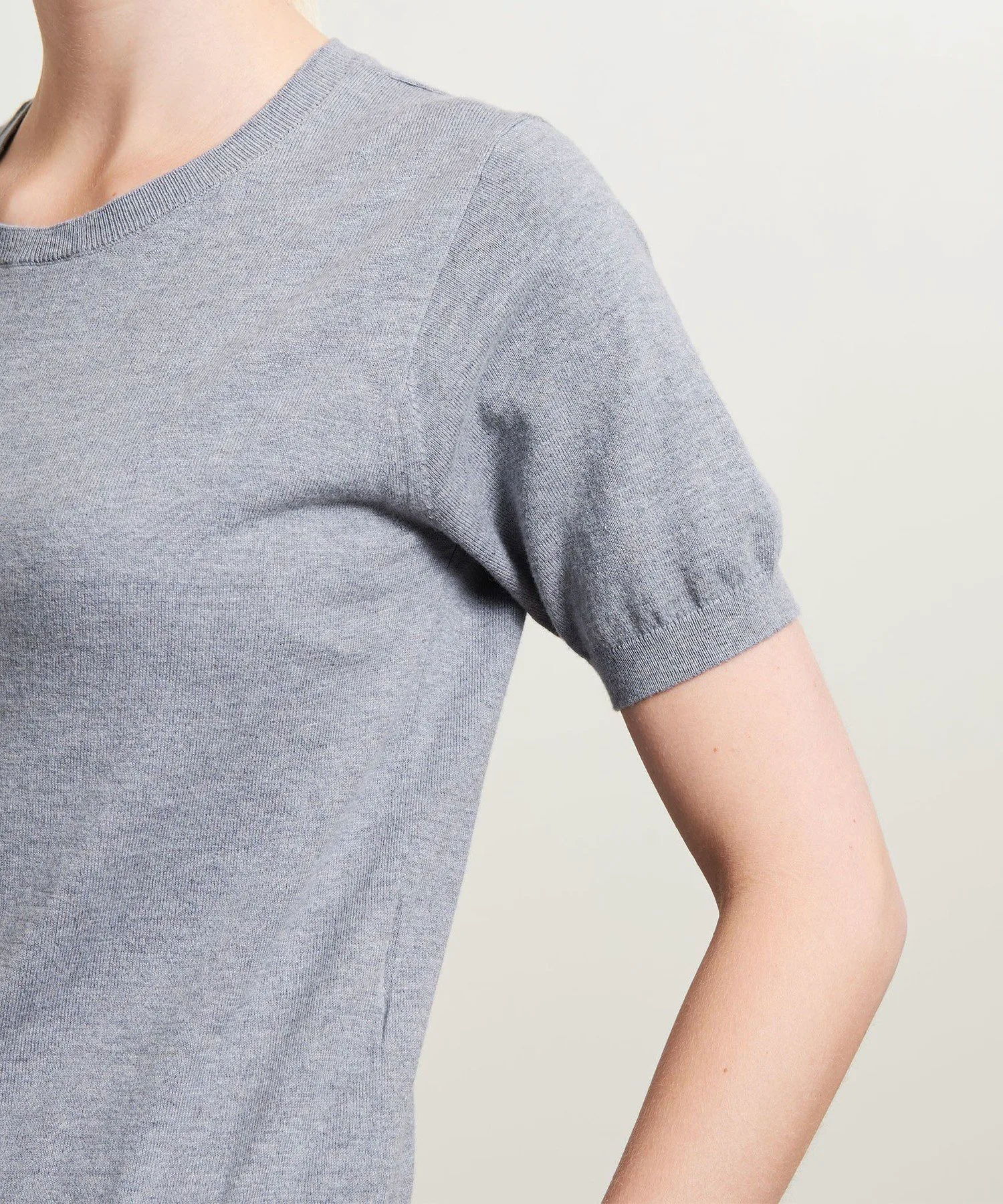 Пуловер с короткими рукавами и лаконичными деталями, подчеркивающими текстуру материала.