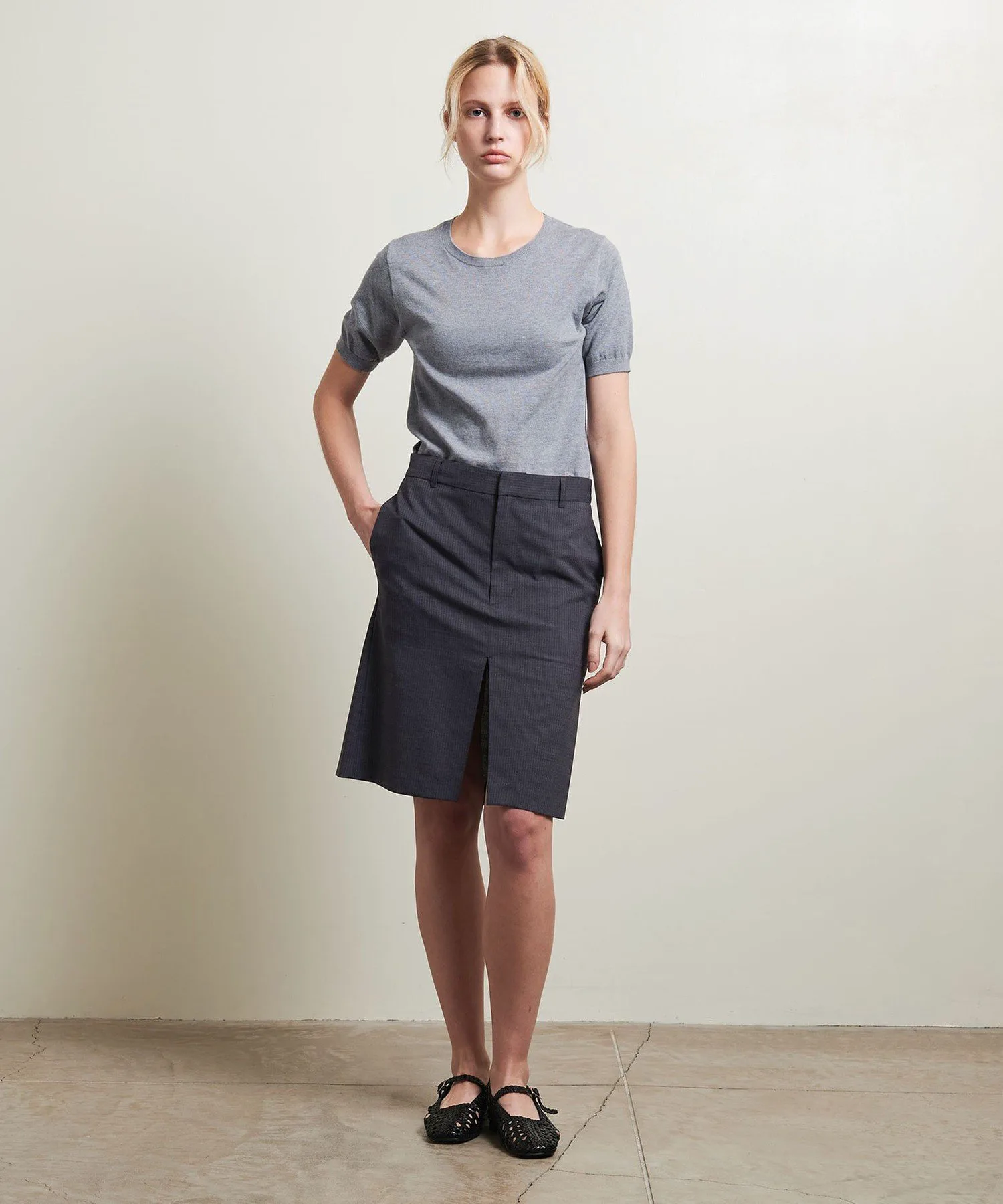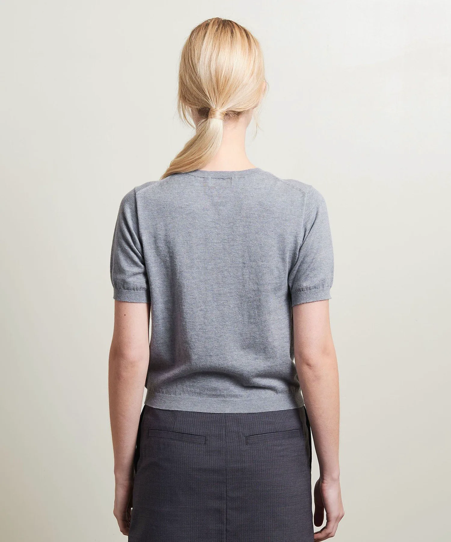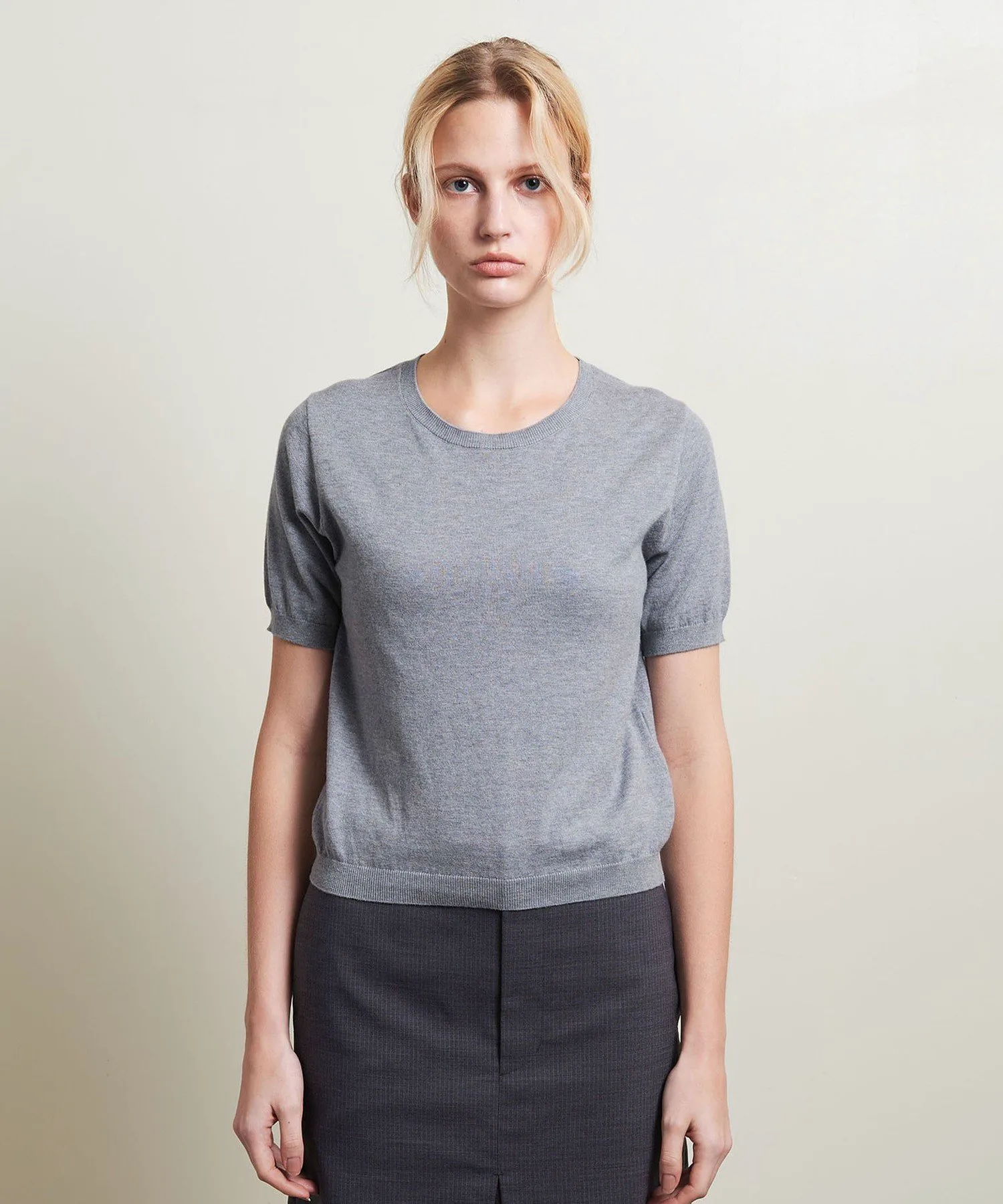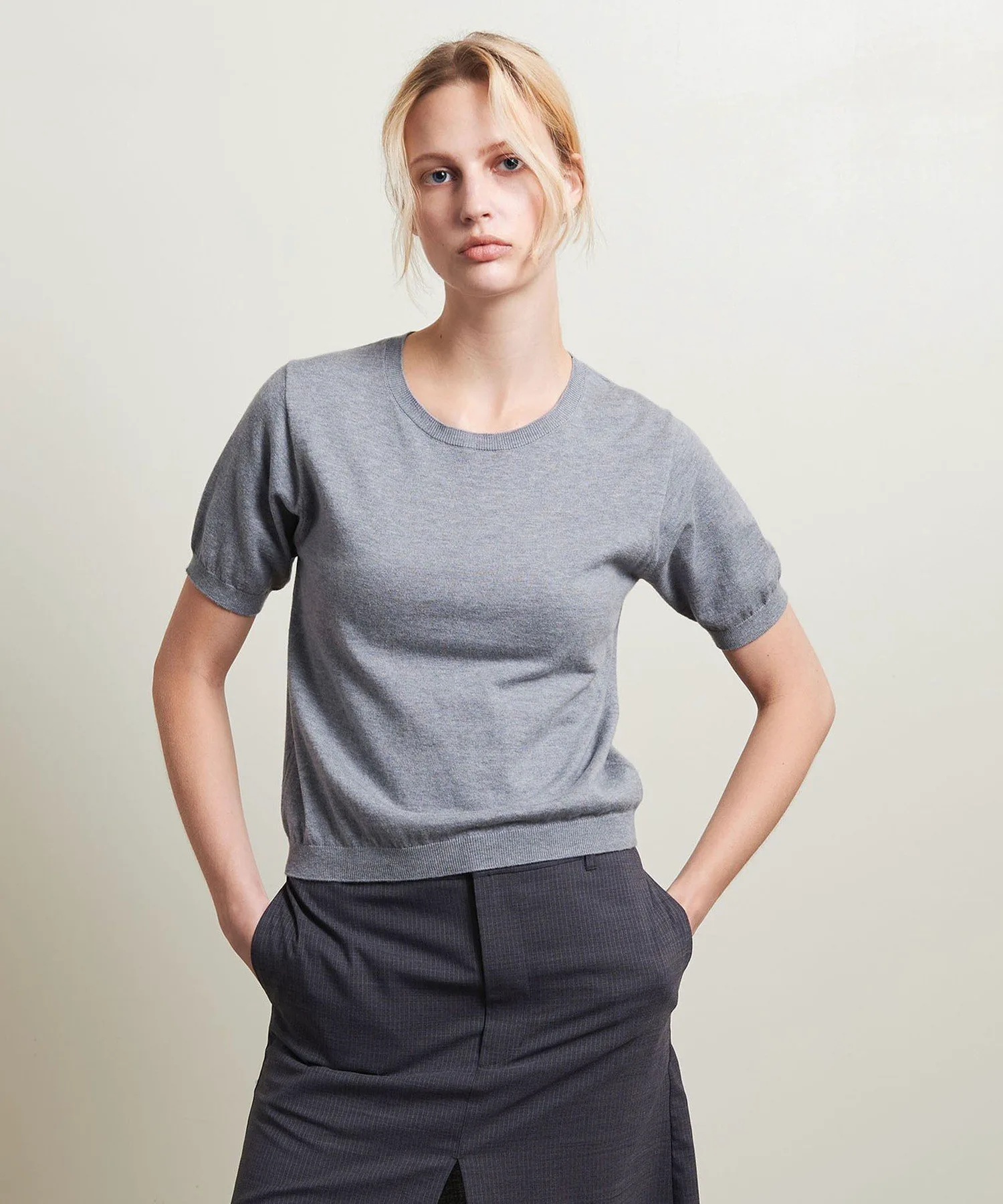 Пуловер с короткими рукавами и лаконичными деталями, подчеркивающими текстуру материала.