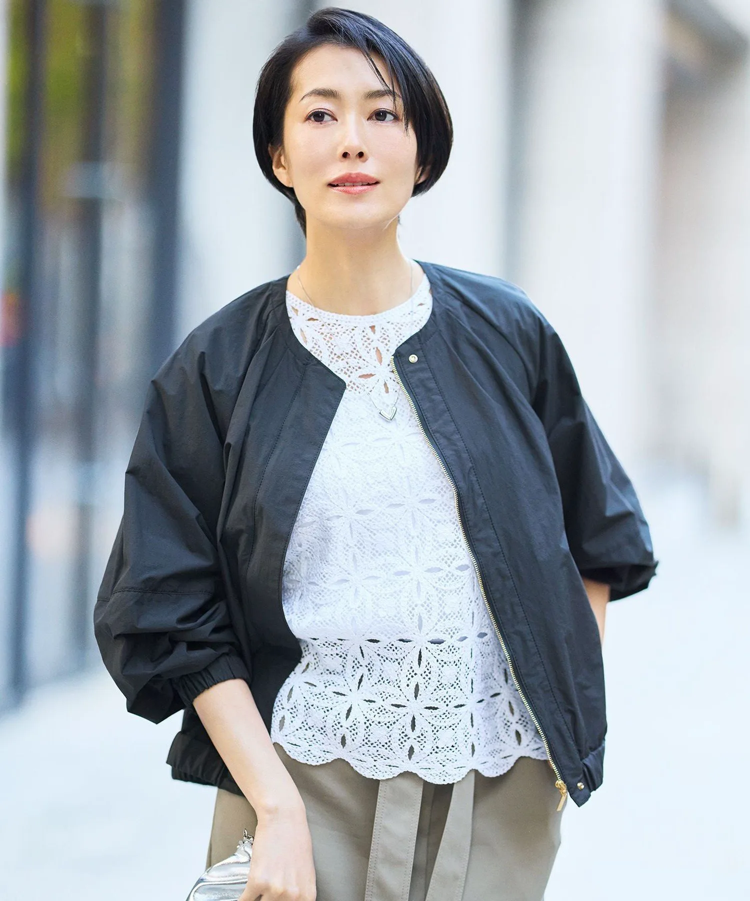 Прозрачная, удобная в носке блузон. Дизайн: Этот блузон без воротника отличается эффектными рукавами-бочонками. Сборки на вырезе и шнурок добавляют элегантности. Сборки по низу создают силуэт с умеренной округлостью и объемностью. Передний и задний края подола немного отличаются, что обеспечивает ощущение легкости и естественное прикрытие бедер. Эластичные манжеты со сборками позволяют создать расслабленный образ, если их подвернуть. Изготовленный из легкого, слегка прозрачного материала, этот блузон станет универсальным изделием на долгие годы. Материал: Этот поплин изготовлен из плотного плетения тонких нейлоновых и хлопковых нитей. Смесь хлопка придает ему естественную текстуру, несмотря на то, что это материал для верхней одежды. Обработка «воздушной стиркой» создает естественную мягкость и текстуру, сочетая эластичность с необходимой степенью упругости. *Изображение является образцом, поэтому характеристики, обработка и размер могут немного отличаться от фактического продукта. Обратите внимание. *Из-за условий съемки цвет может отличаться от фактического продукта. Рост: 175 см, Обхват груди: 80 см, Обхват талии: 60 см, Обхват бедер: 88 см.