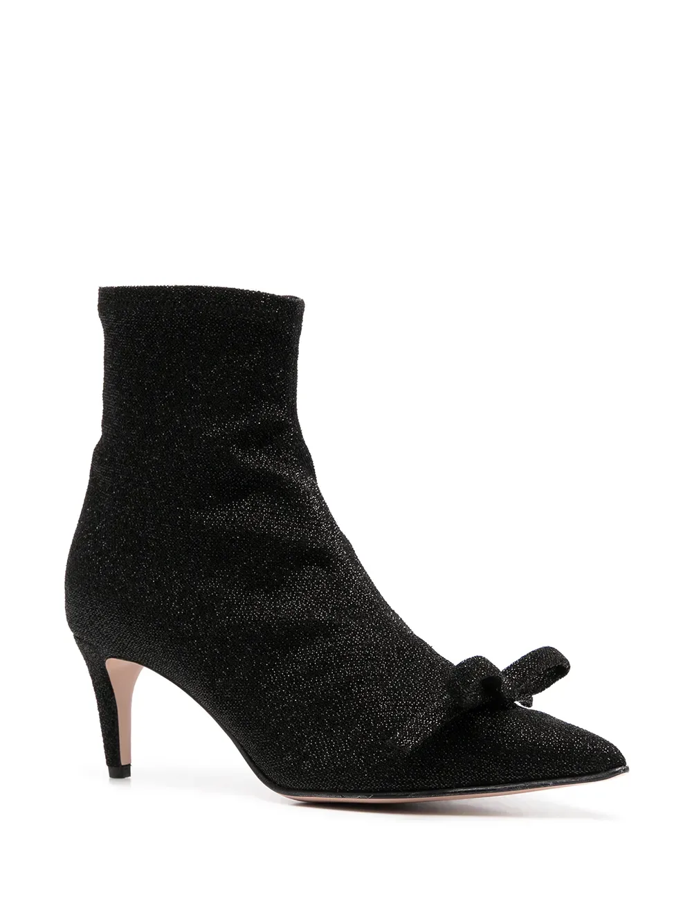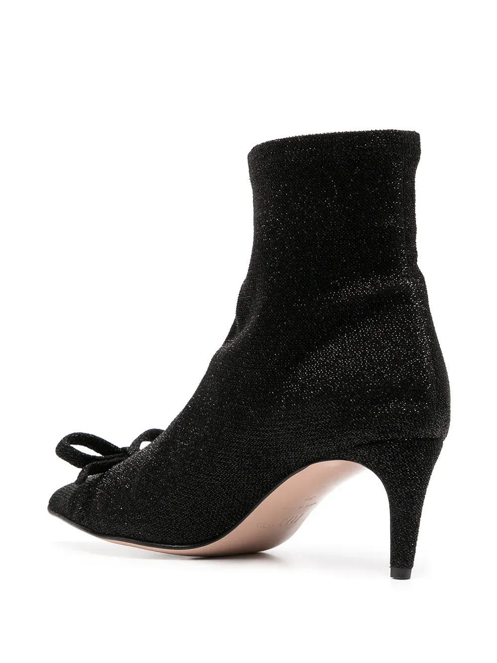 Бант, заостренный носок, длина по щиколотку и низкий каблук. Цвет: черный.