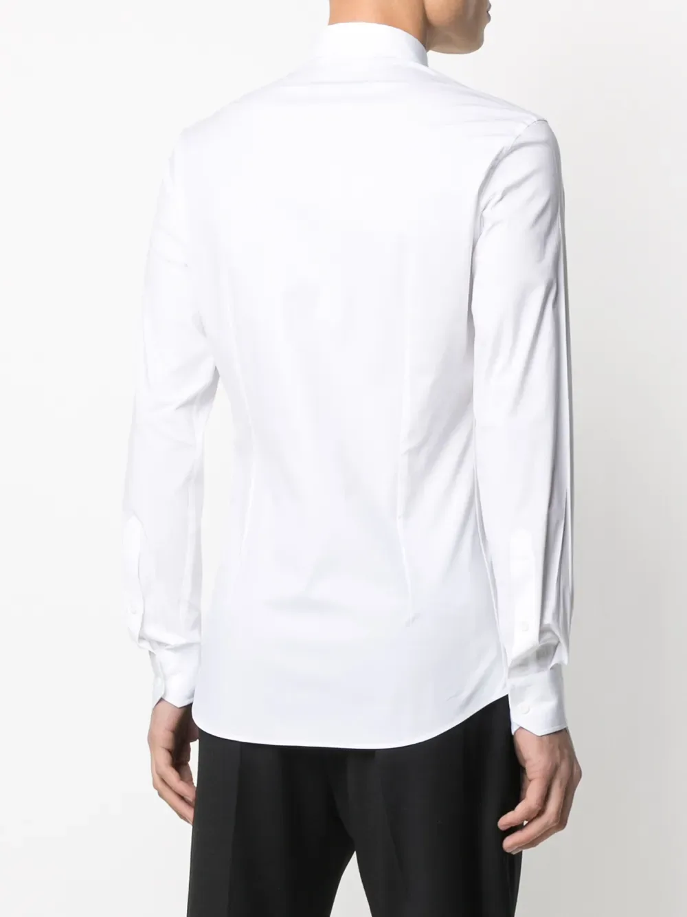 Принт с логотипом на груди, классический воротник, застежка на пуговицах спереди, длинные рукава, манжеты на пуговицах и закругленный подол. Цвет: белый.