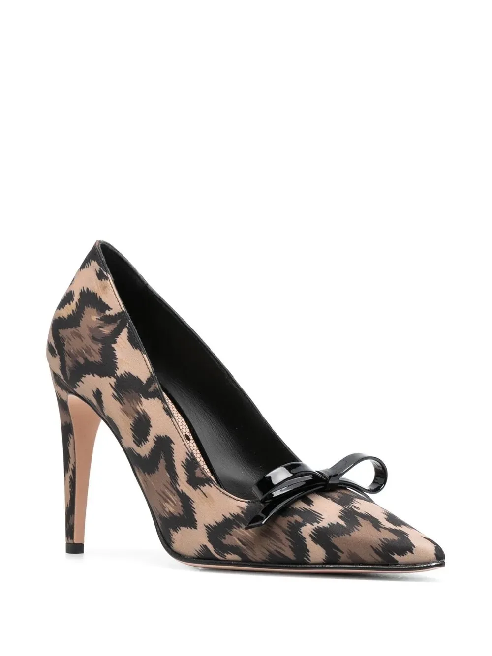 Коричневый, черный, кожа, сплошной леопардовый принт, бант, заостренный носок, стелька с логотипом, модель без застежки и высокий каблук.