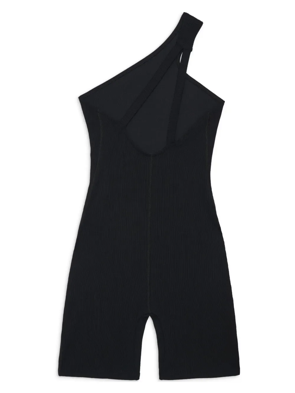 Черный, эластичный материал, слитная модель, ремешки, модель на одном плече, модель без застежки, прямой крой и длина выше колена.