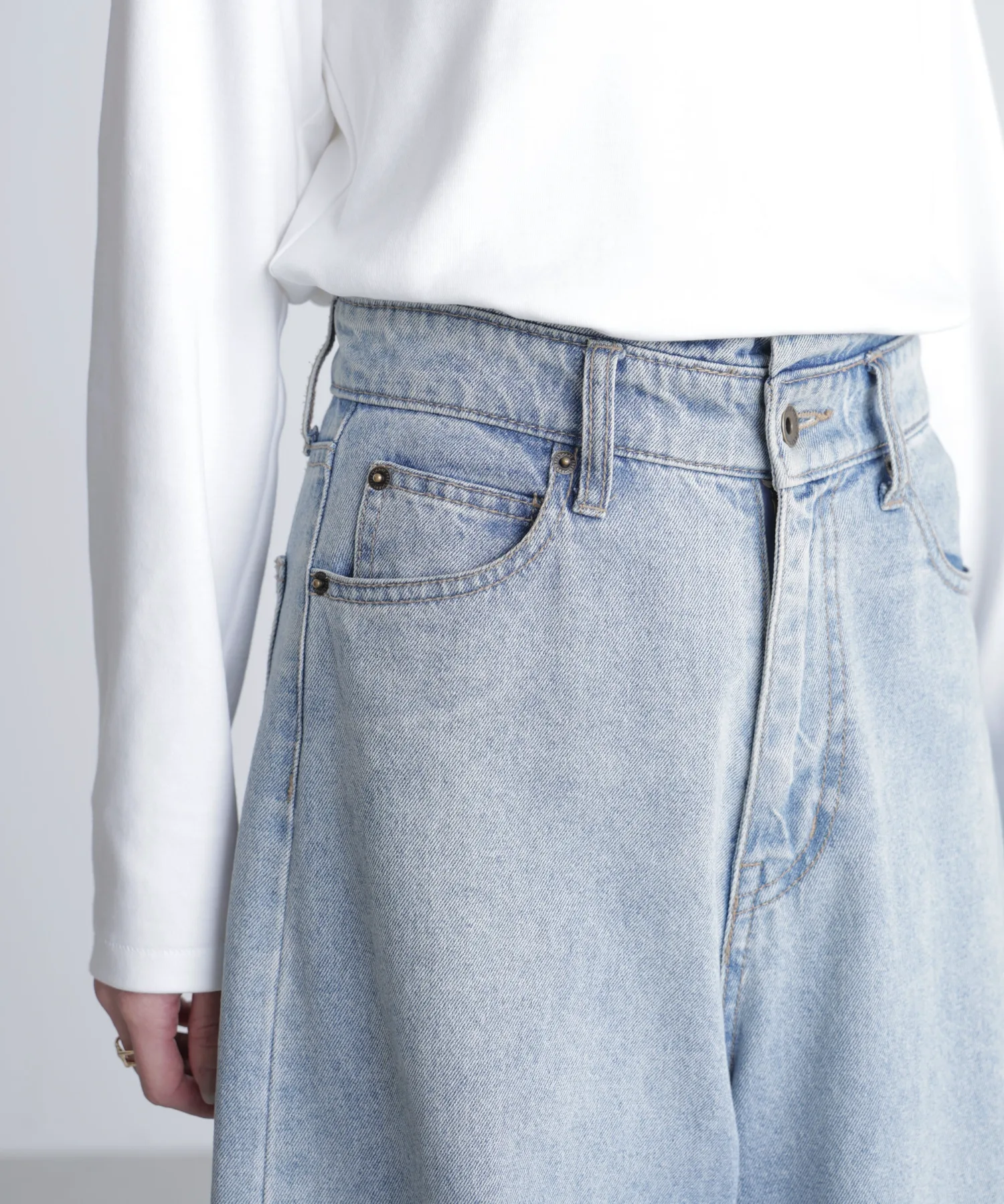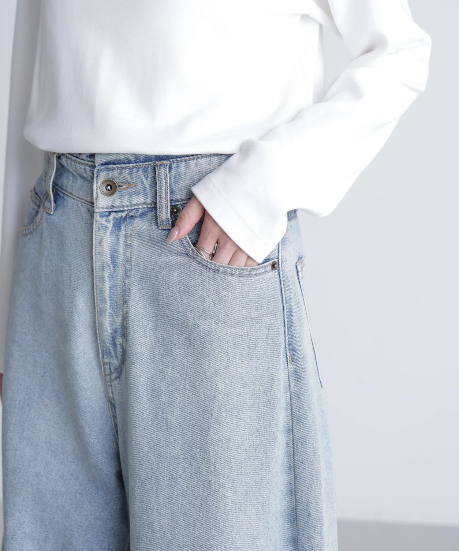 Главная особенность этих джинсовых брюк — их округлая, яйцеобразная форма. Хотя дизайн обычно ориентирован на мальчишеский стиль, яйцеобразный крой позволяет создать женственный образ. Благодаря смелому силуэту мы рекомендуем сочетать их с облегающим топом или добавлять прозрачную или укороченную рубашку.