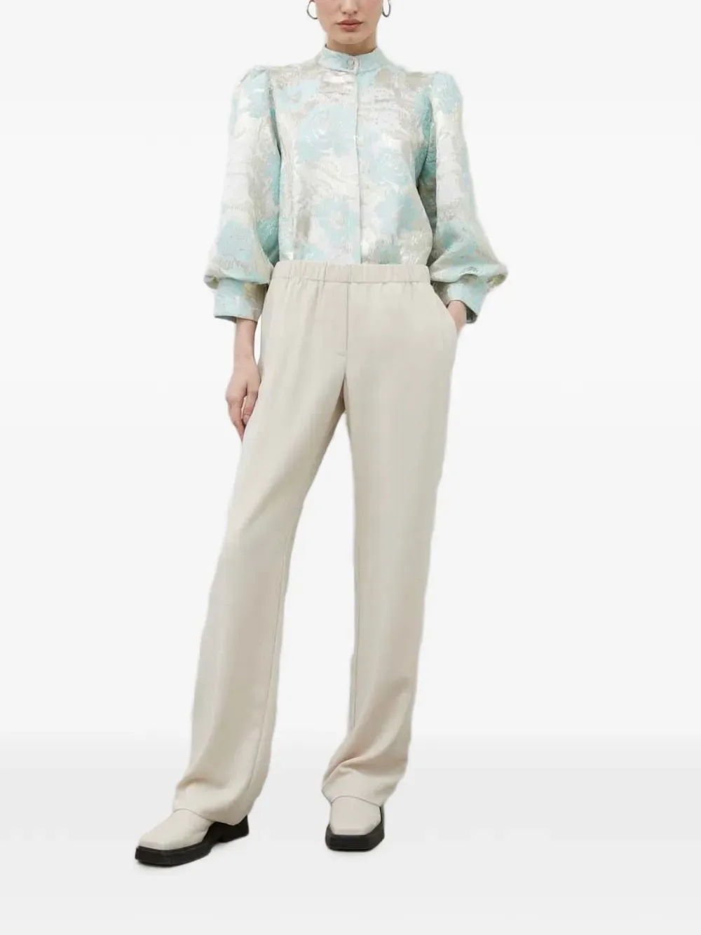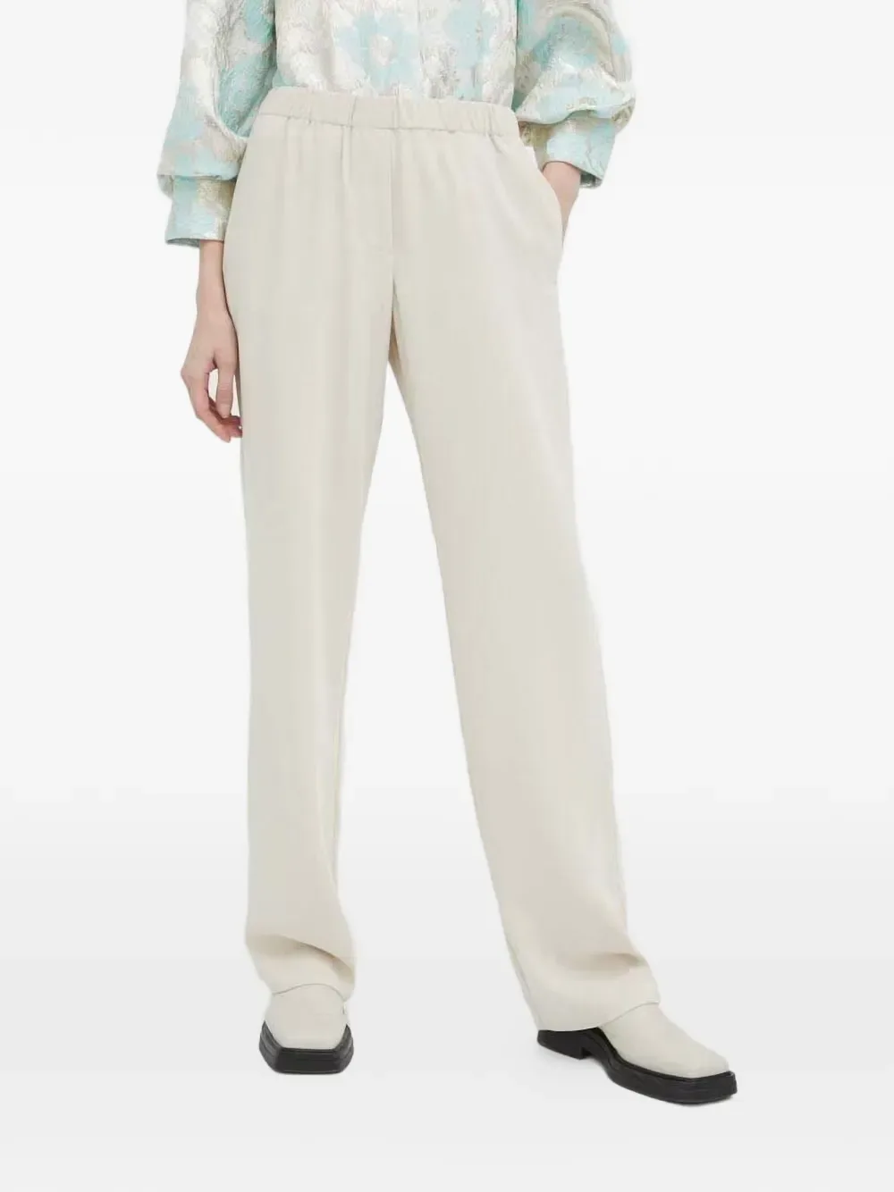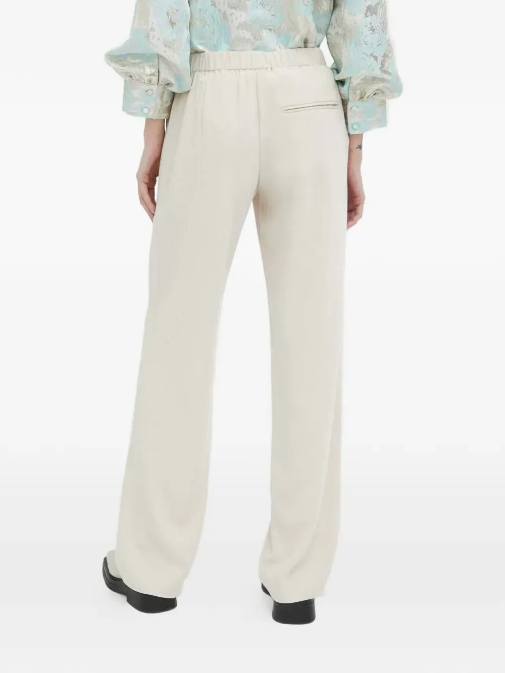 Светло-бежевый прямой крой, эластичный пояс, задний прорезной карман