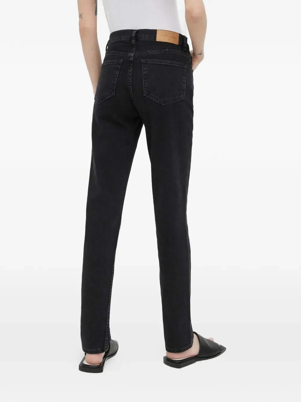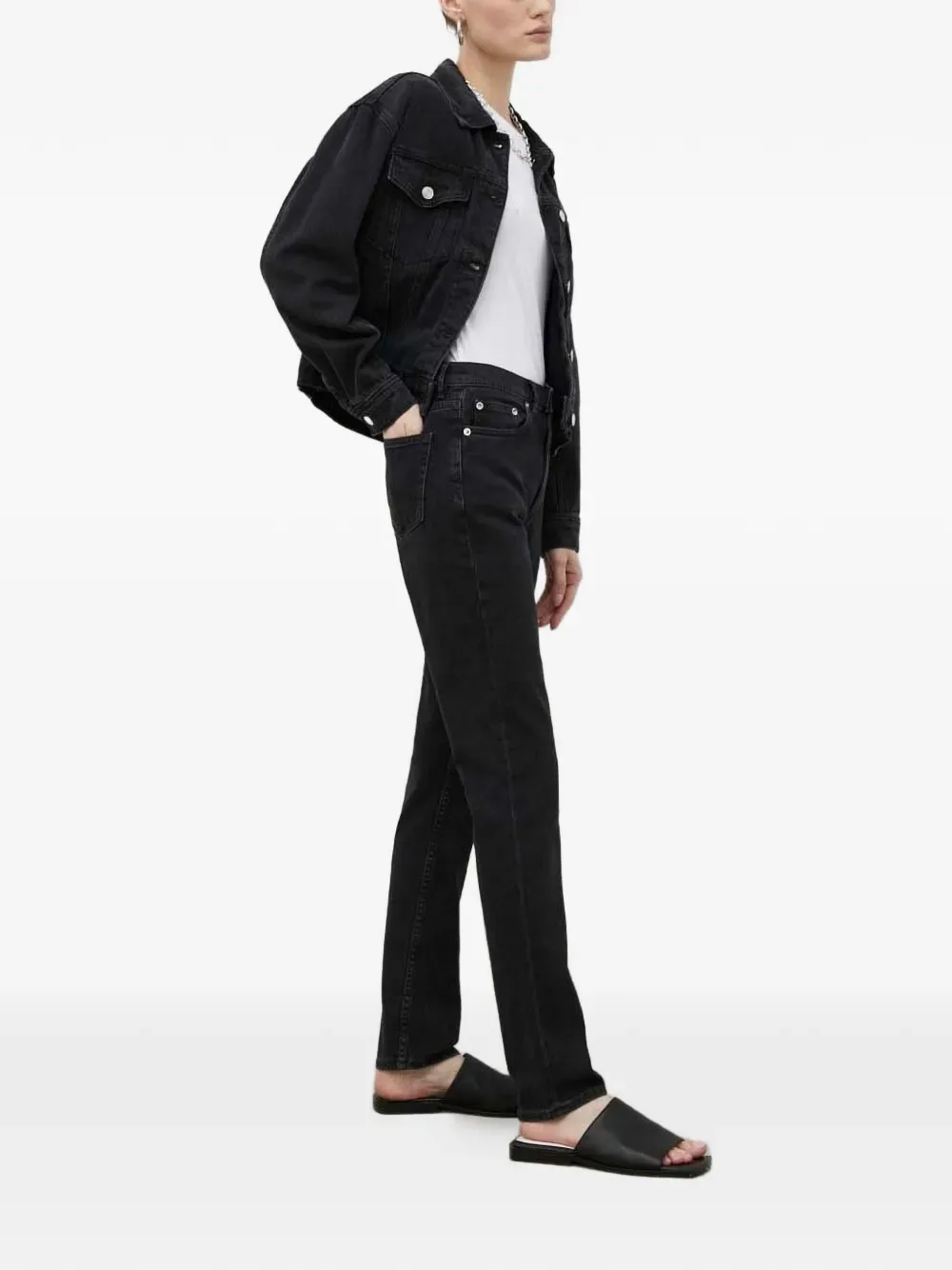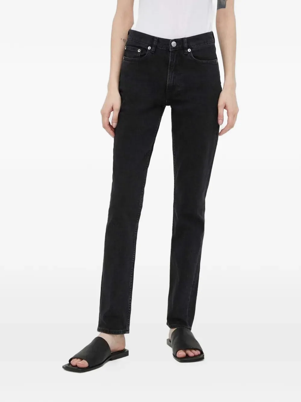 Черные джинсы с застежкой на пуговицы, пятью карманами, шлевками для ремня и прямыми штанинами