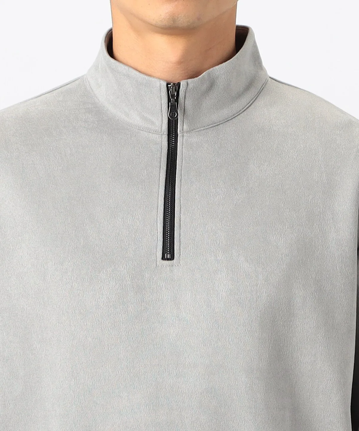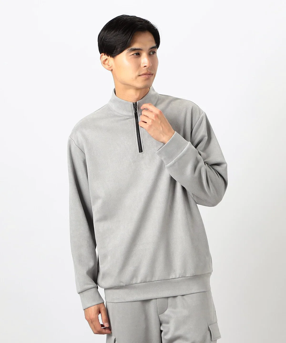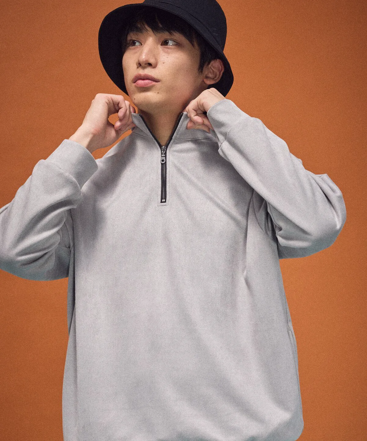 Этот элегантный пуловер с застежкой-молнией до середины груди имеет свободный крой и модный спортивный вид.