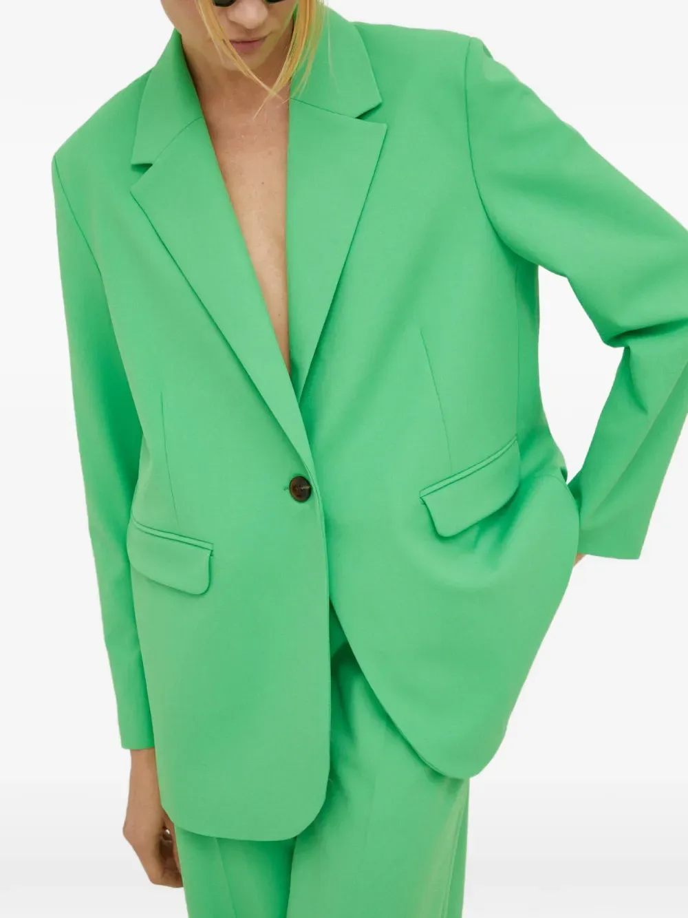 Зеленый, накладные карманы, лацканы с вырезом, однобортный, манжеты на пуговицах