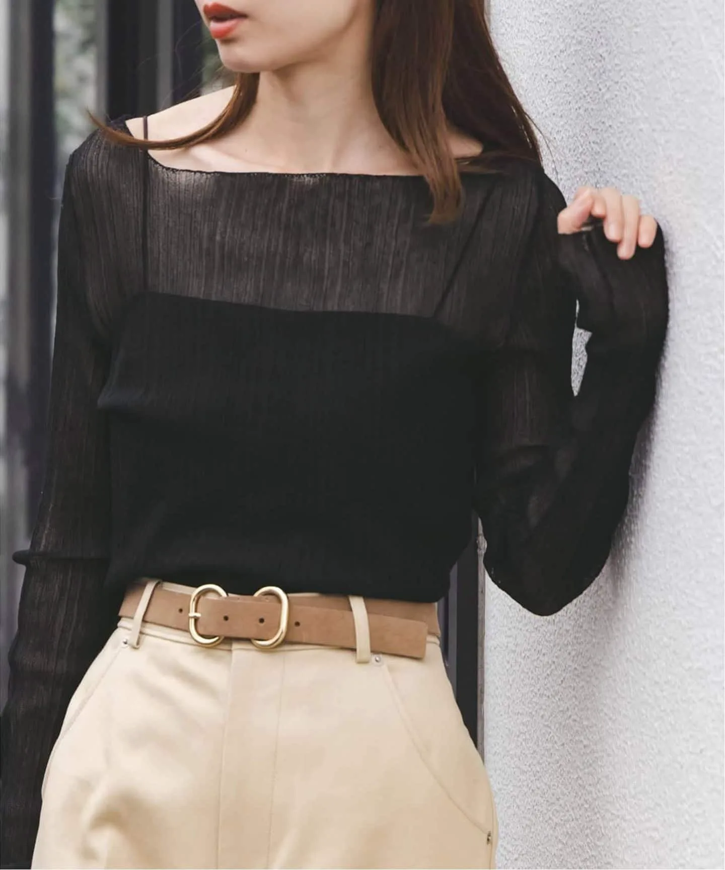Мягкий, плиссированный, полупрозрачный трикотаж.