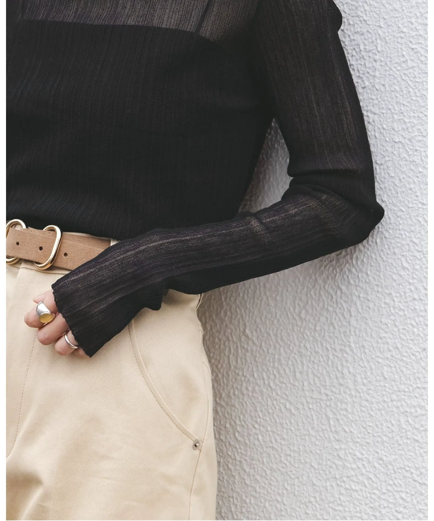 Заправленные рукава создают изысканный образ, что делает его незаменимым элементом гардероба вплоть до начала весны.
