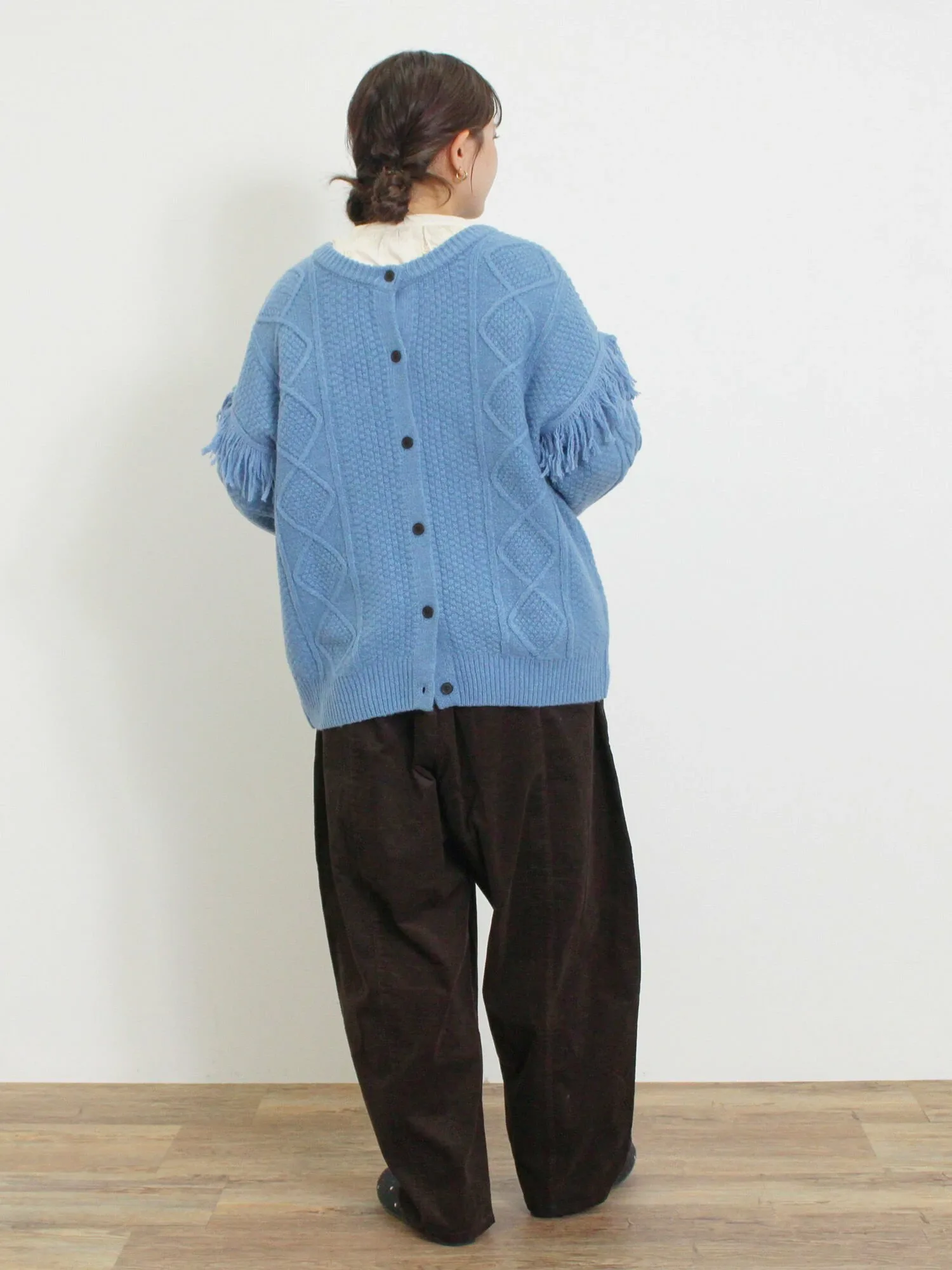 Он имеет двухсторонний дизайн, позволяющий носить его как спереди, так и сзади, что позволяет использовать его как пуловер или кардиган.