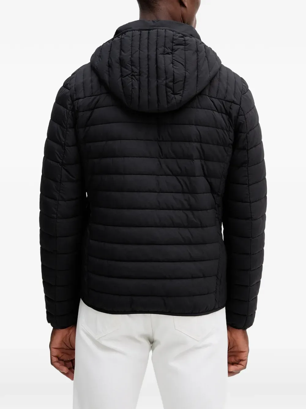 Черная стеганая куртка с капюшоном, застежкой-молнией, нашивкой с логотипом и рубчатым воротником
