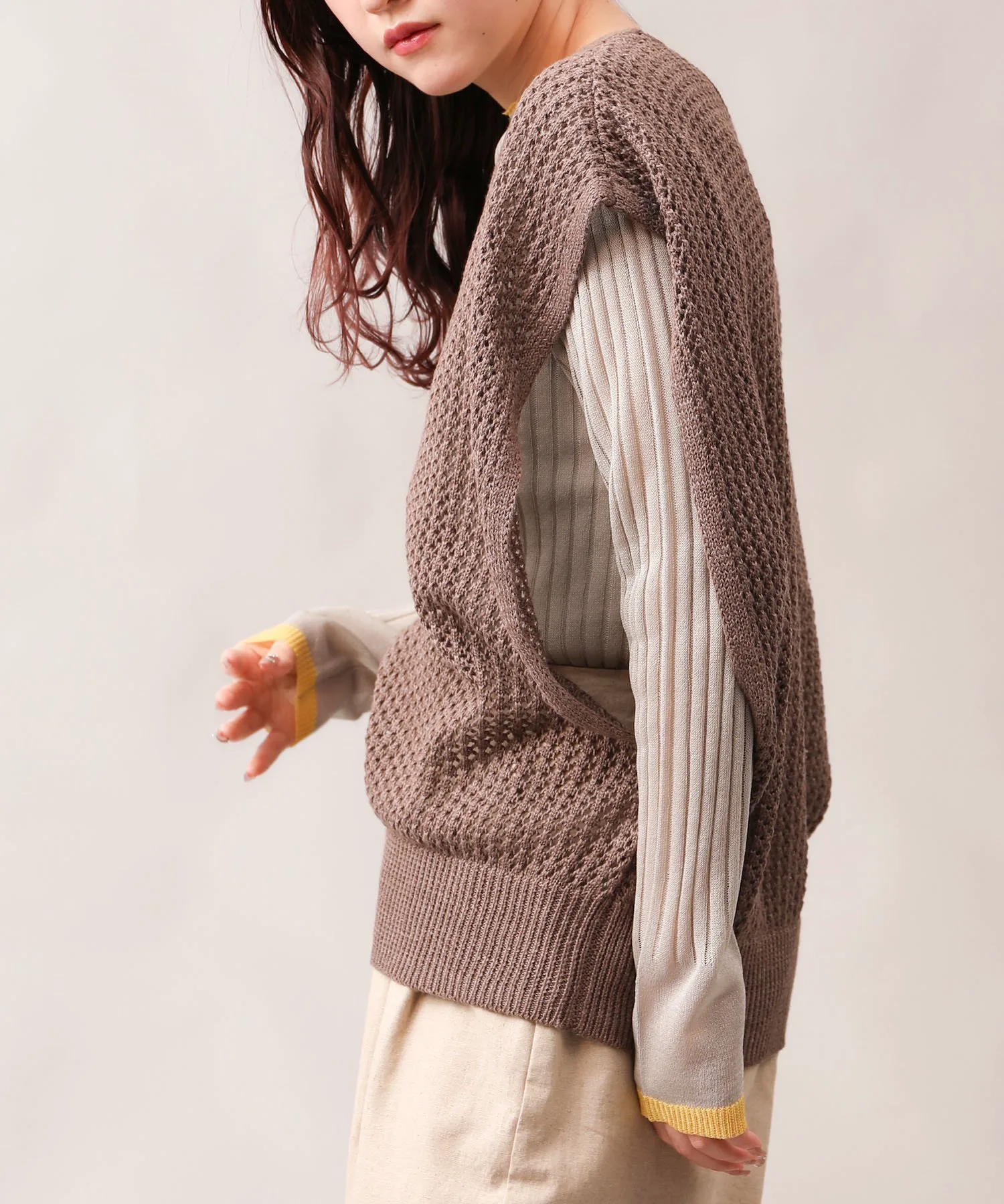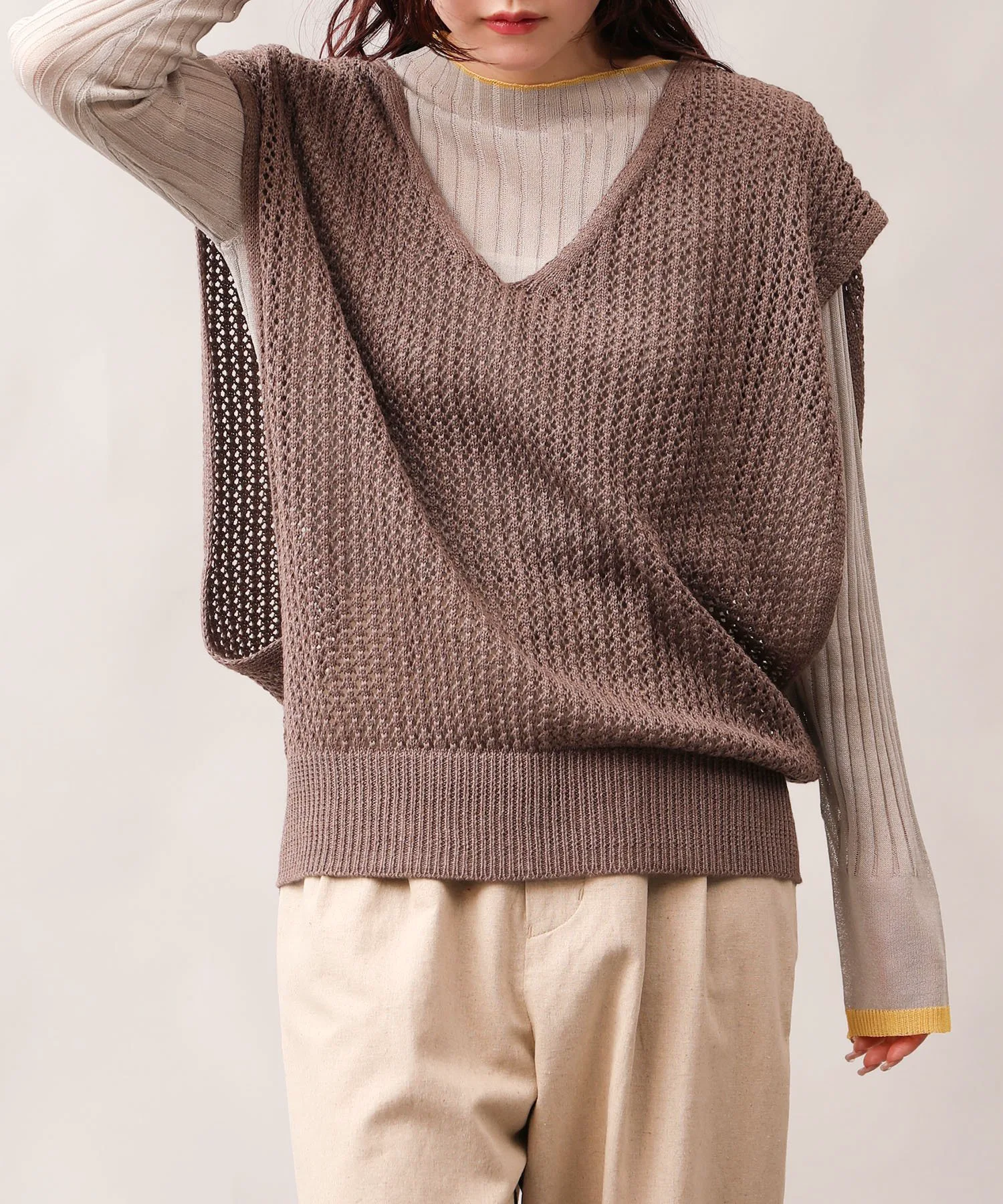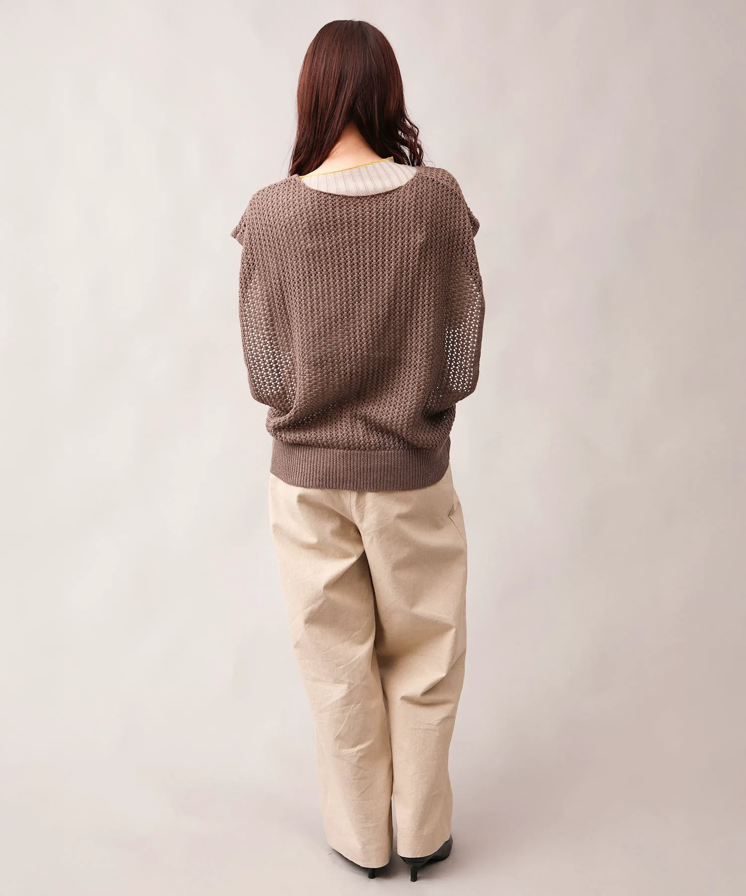 Прозрачный трикотаж с французскими рукавами.