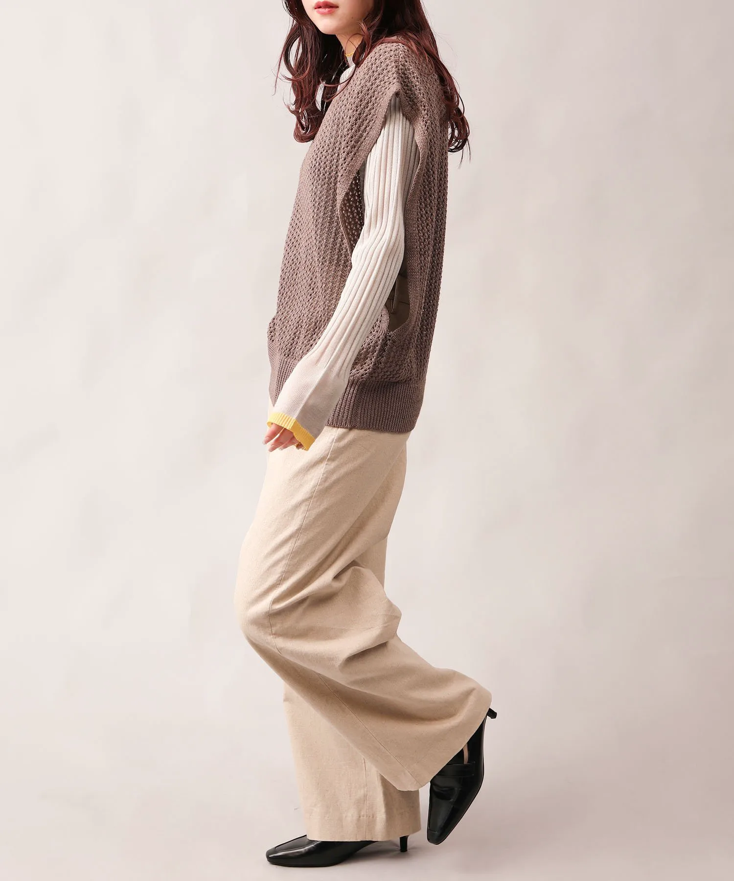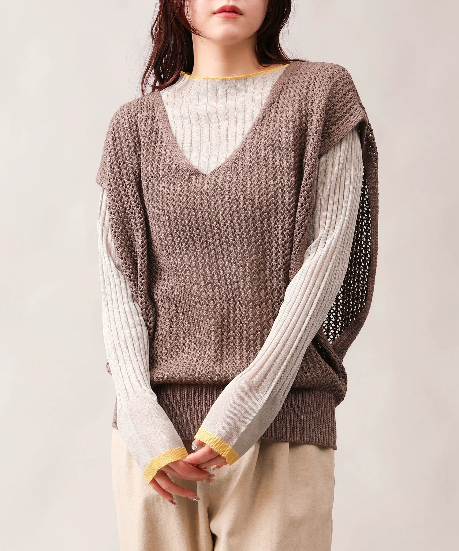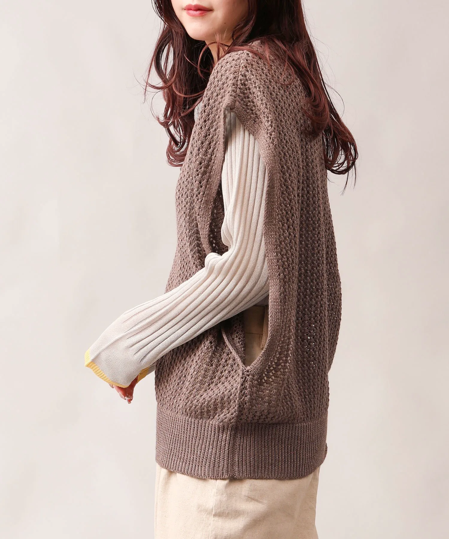 Прозрачный трикотаж с французскими рукавами.