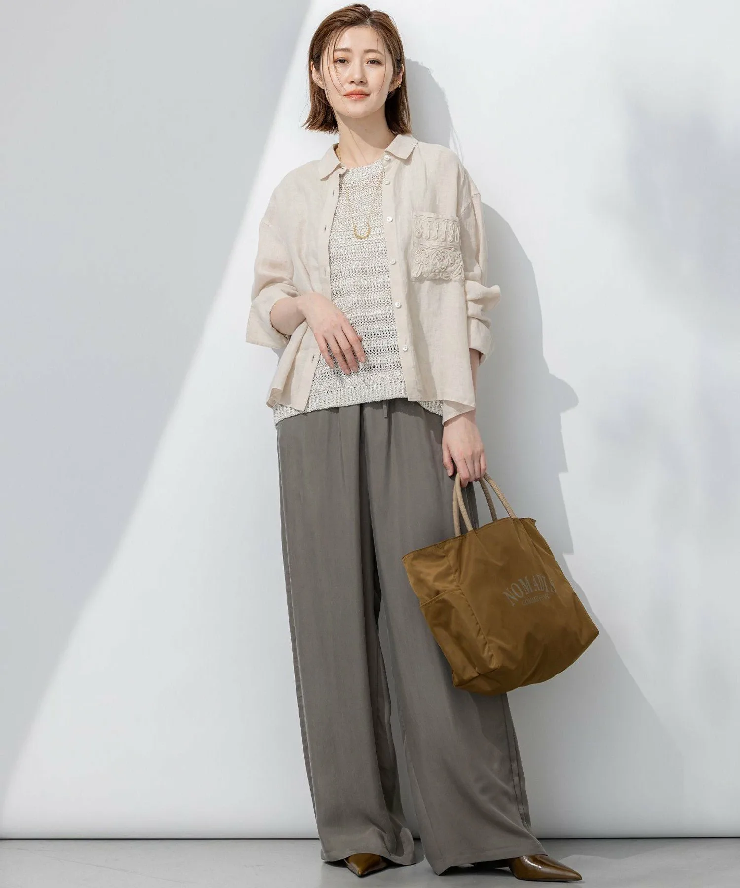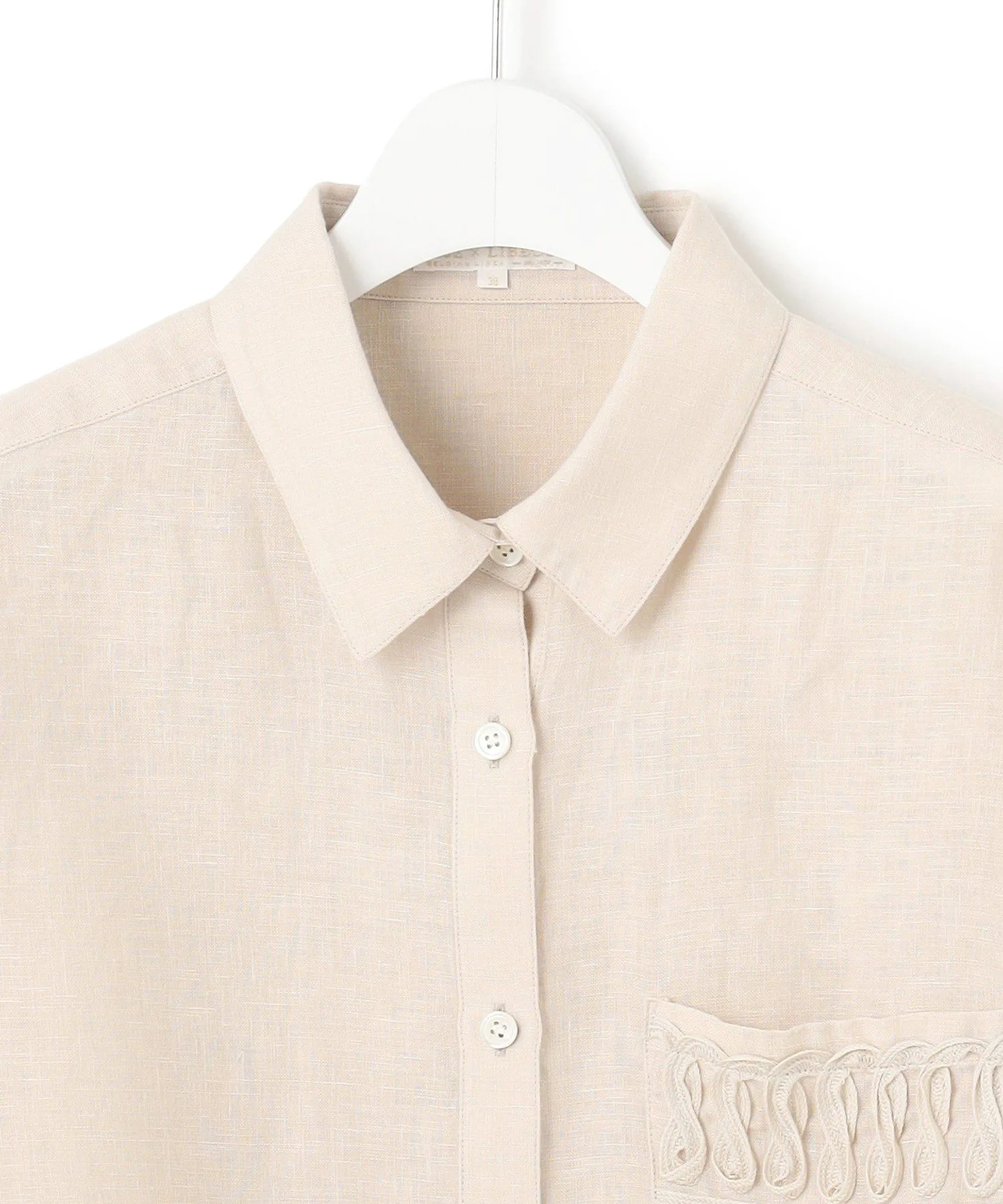 Эта укороченная рубашка, украшенная вышивкой на карманах, выглядит модно и шикарно уже в носке. Свободный крой и слегка толстые манжеты делают её простой, но уникальной вещью. Естественная текстура льна создает изысканный баланс между утонченным и повседневным стилем. Доступна в пяти цветах: три однотонных цвета — чистый белый (#001), элегантный темно-синий (#075) и мягкий бежевый (#033), а также два цвета в полоску — изысканная темно-коричневая полоска (#135) и милая, изысканная лавандовая полоска (#183).
