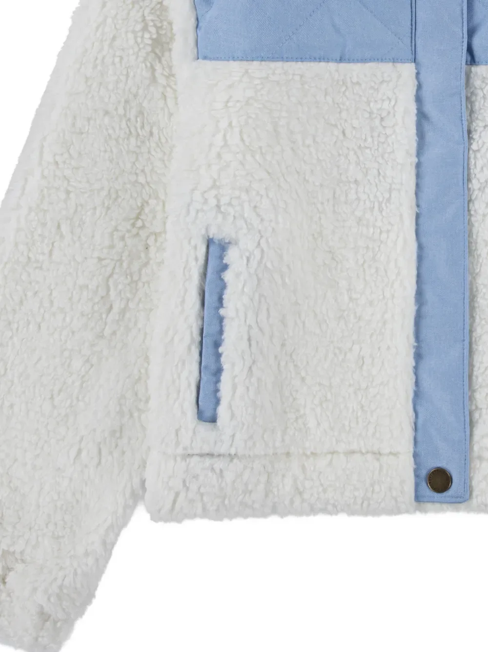Белая и голубая шевриновая фактура, стеганная отделка, классический воротник, прорезной карман
