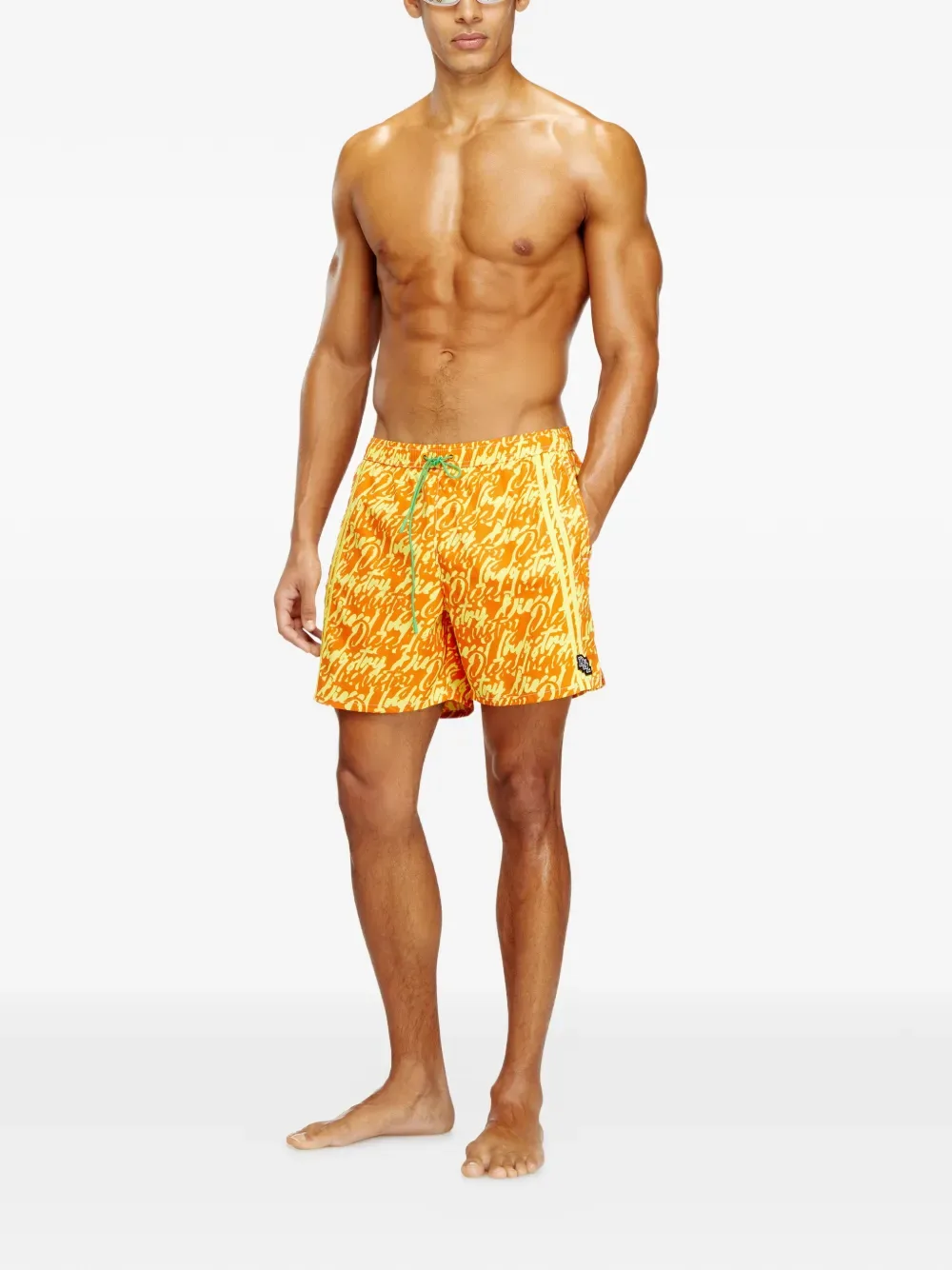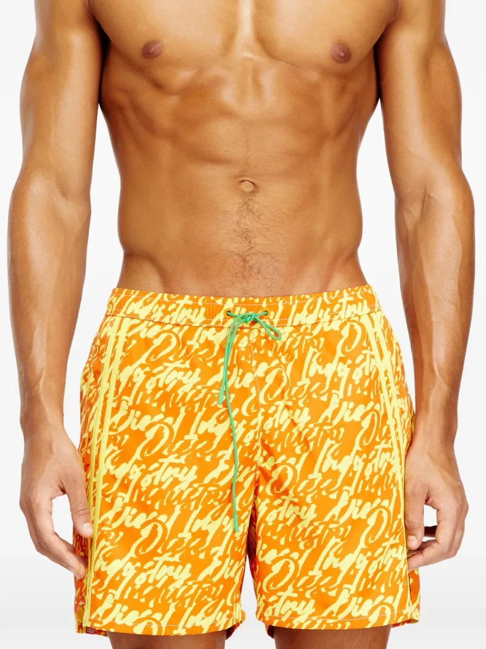 Желтый цвет, узор по всей поверхности, полоска по бокам, застежка на шнуровке, эластичный пояс. Пожалуйста, примерьте купальник поверх собственной одежды.