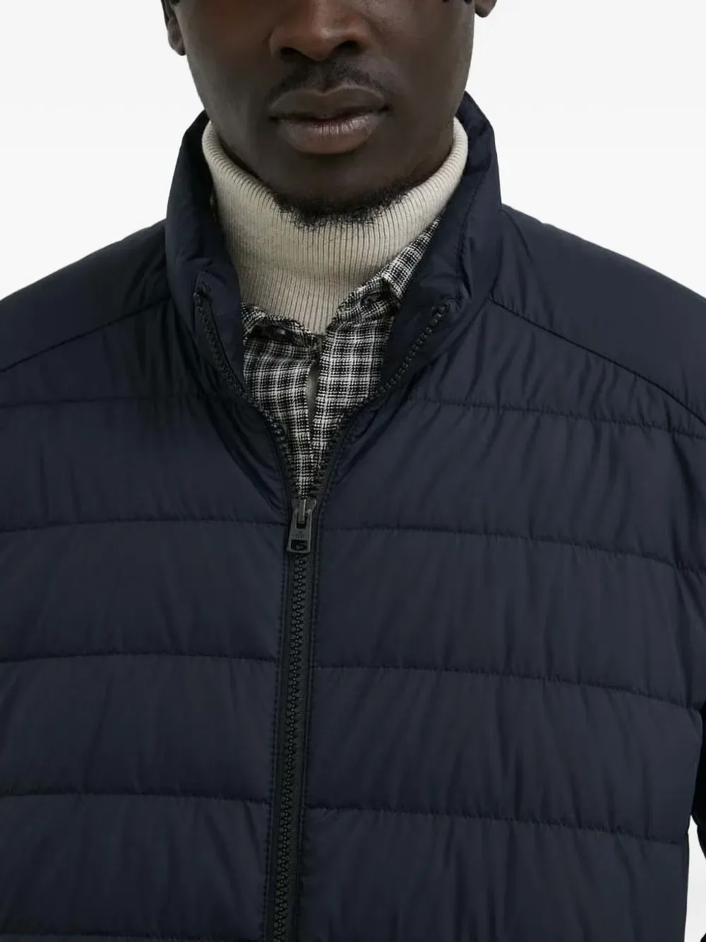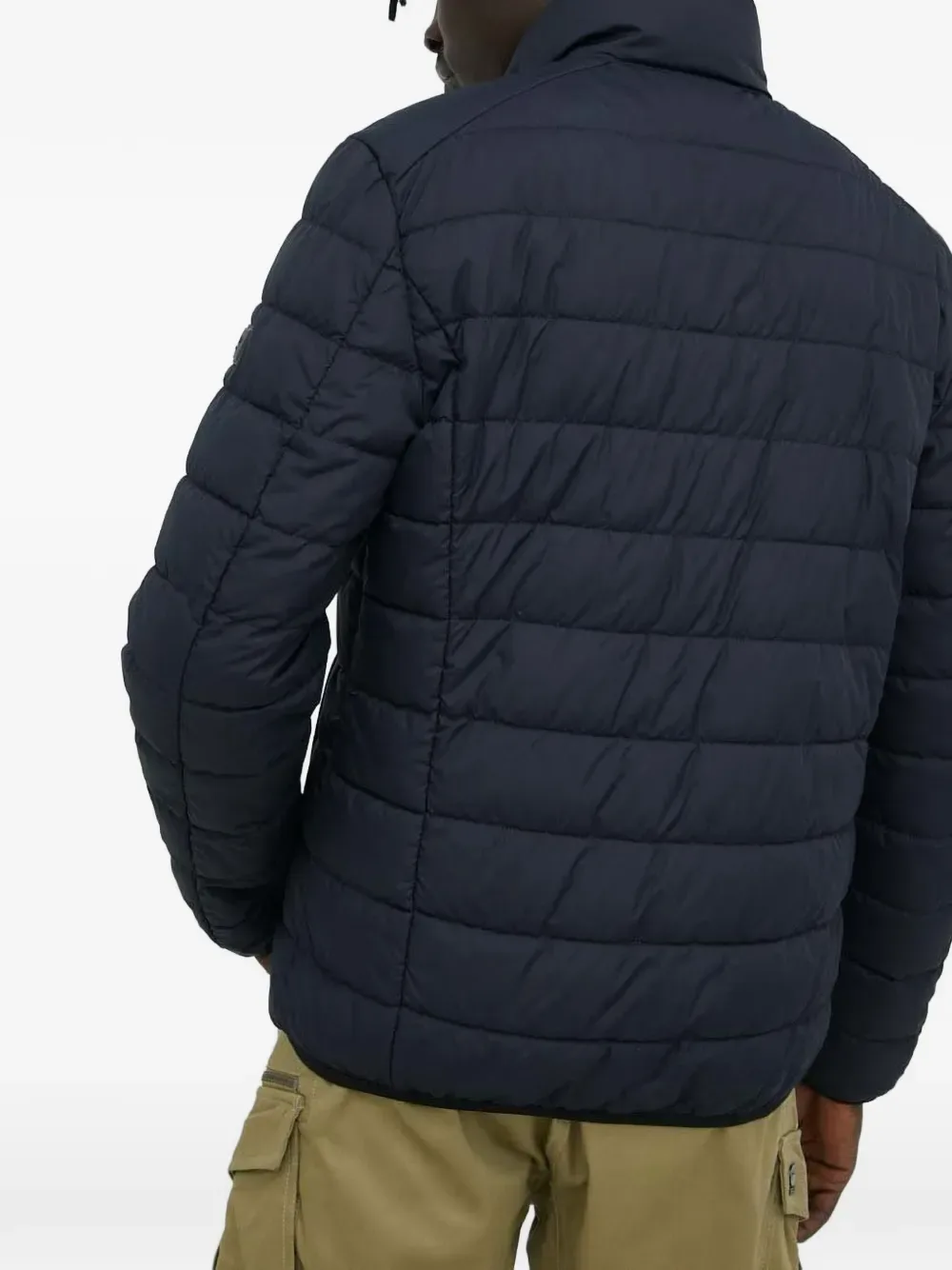 Темно-синяя стеганая куртка на молнии с округлым вырезом, нашивкой-логотипом и прорезными карманами