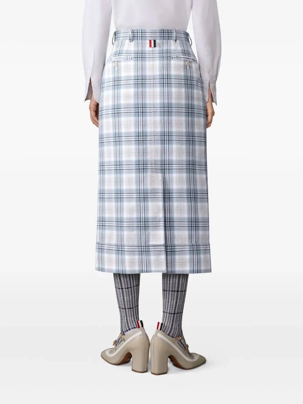 Клетчатая юбка миди THOM BROWNE, белый