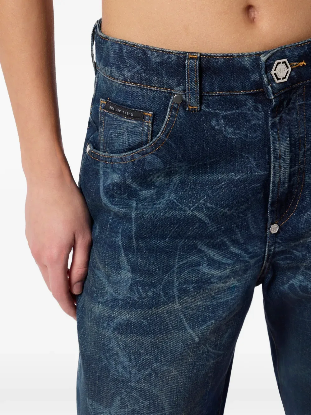 Джинсы с принтом Philipp Plein, синий
