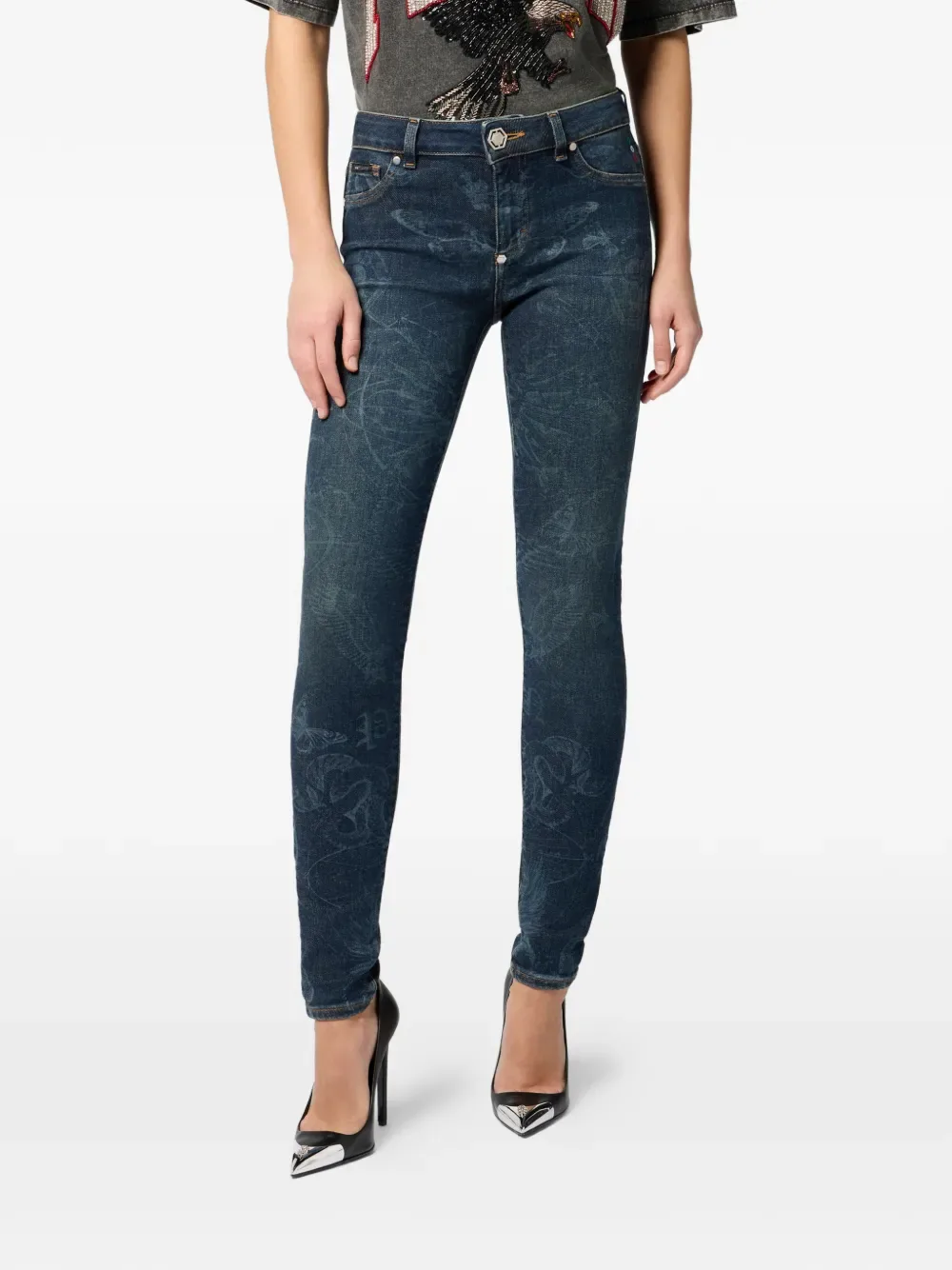 Джегинсы с принтом Philipp Plein, синий