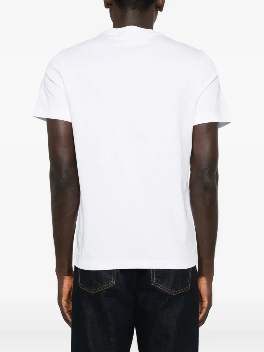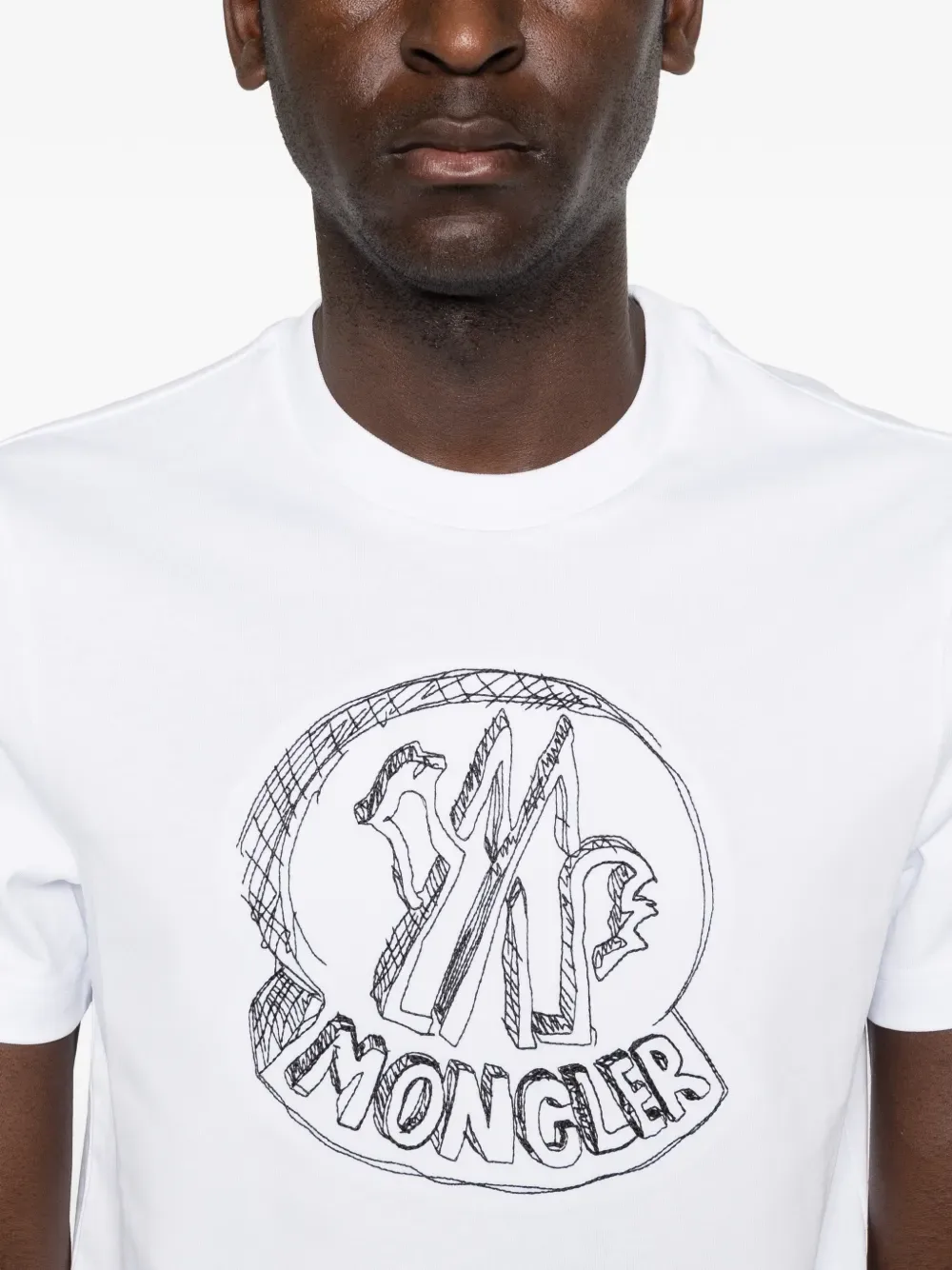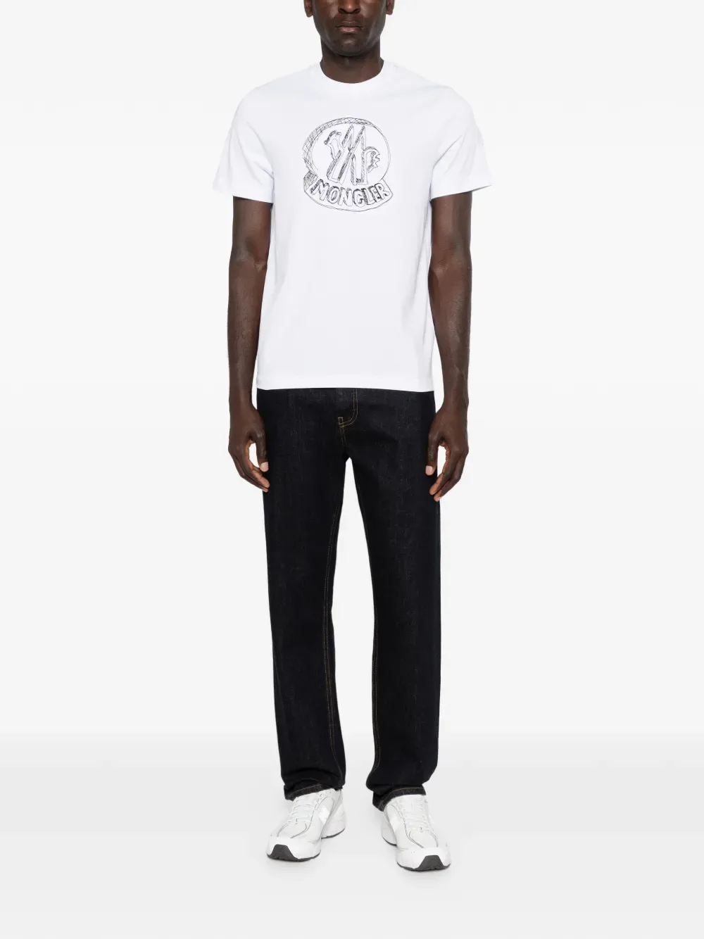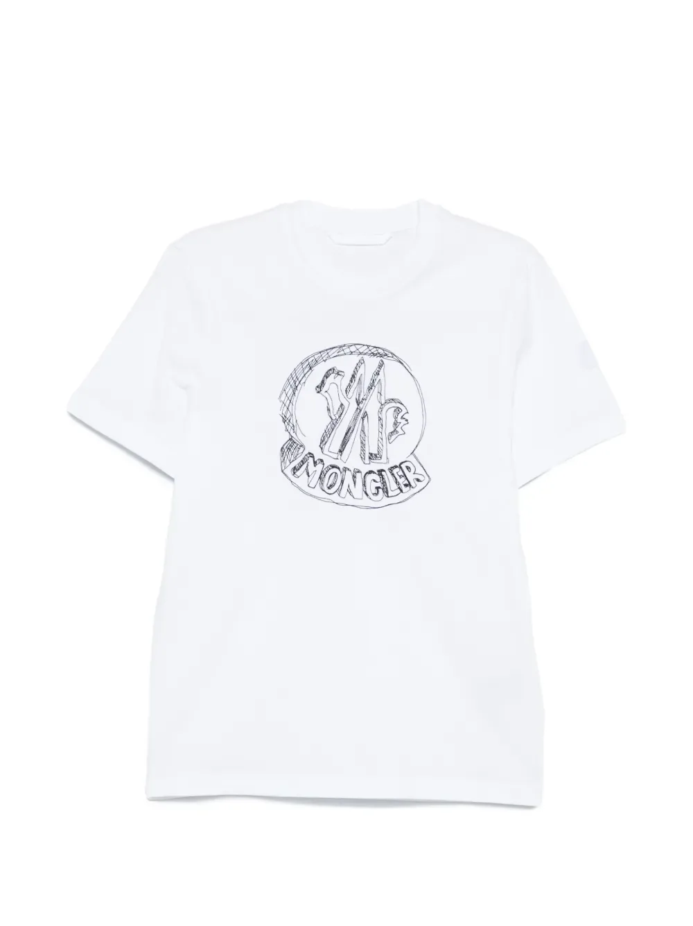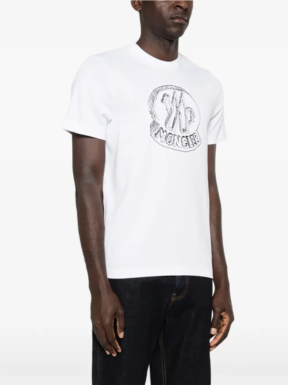 Белая футболка с логотипом, круглым вырезом и короткими рукавами