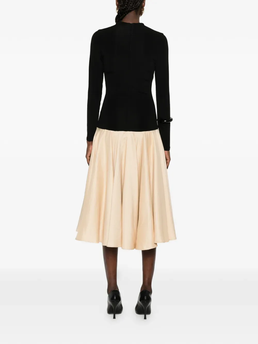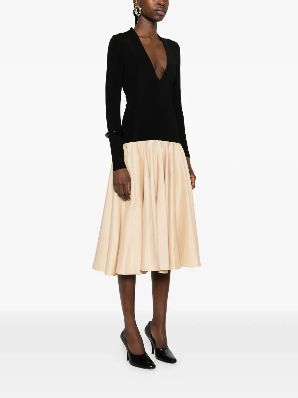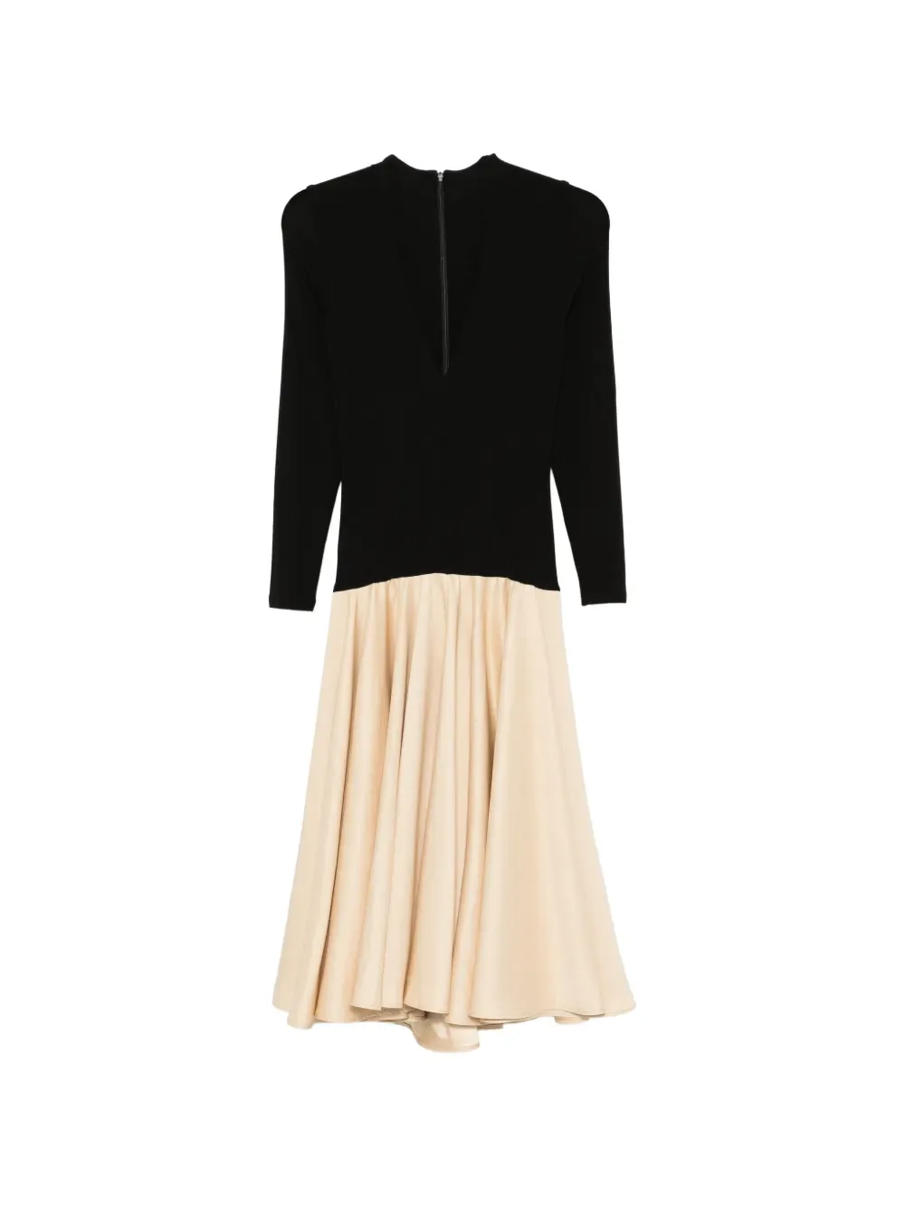 Ойстер черный, V-образный вырез, длинные рукава, юбка силуэта "А", застежка-молния
