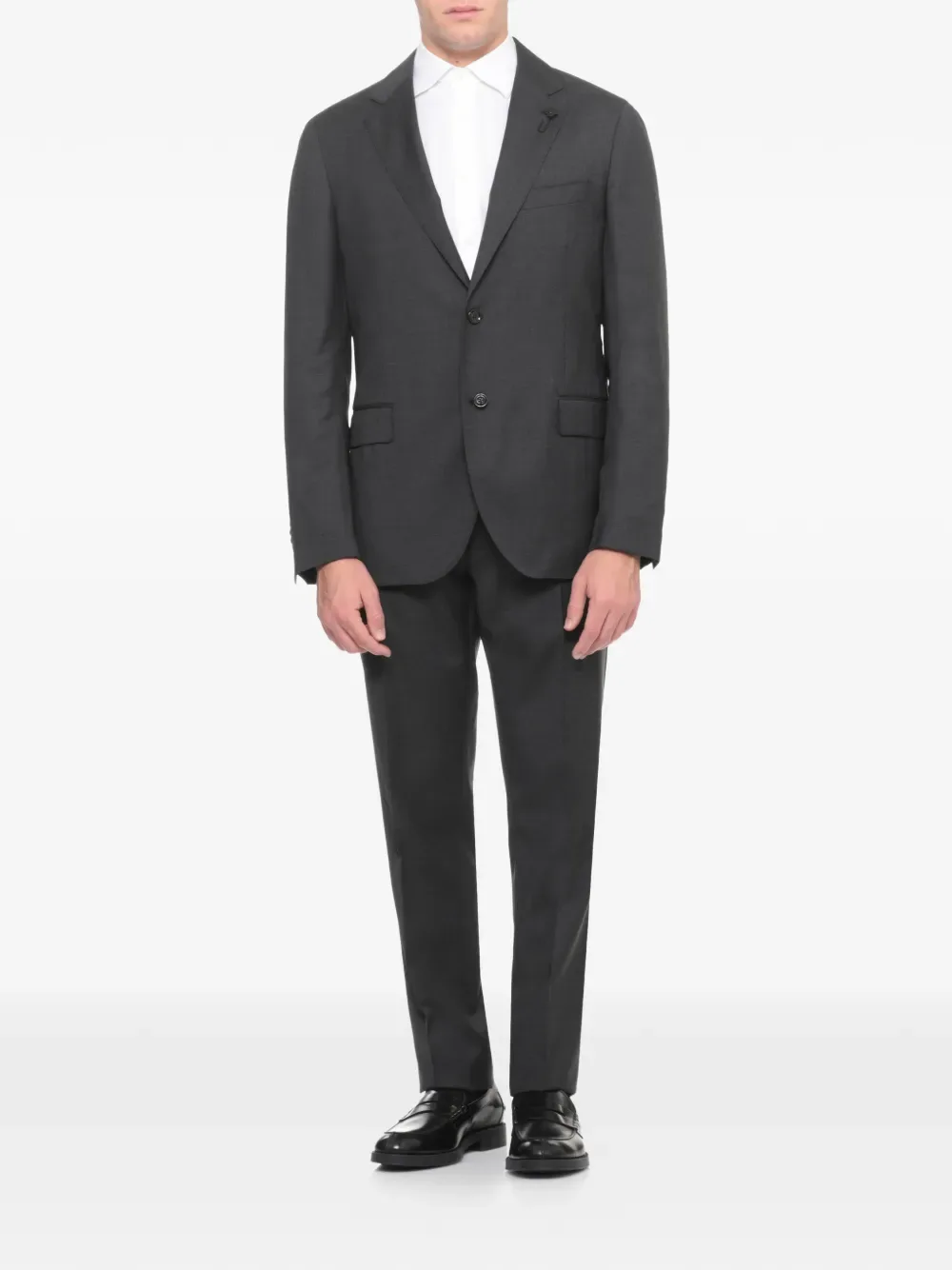 Костюм с цветочной пуговицей Lardini, серый