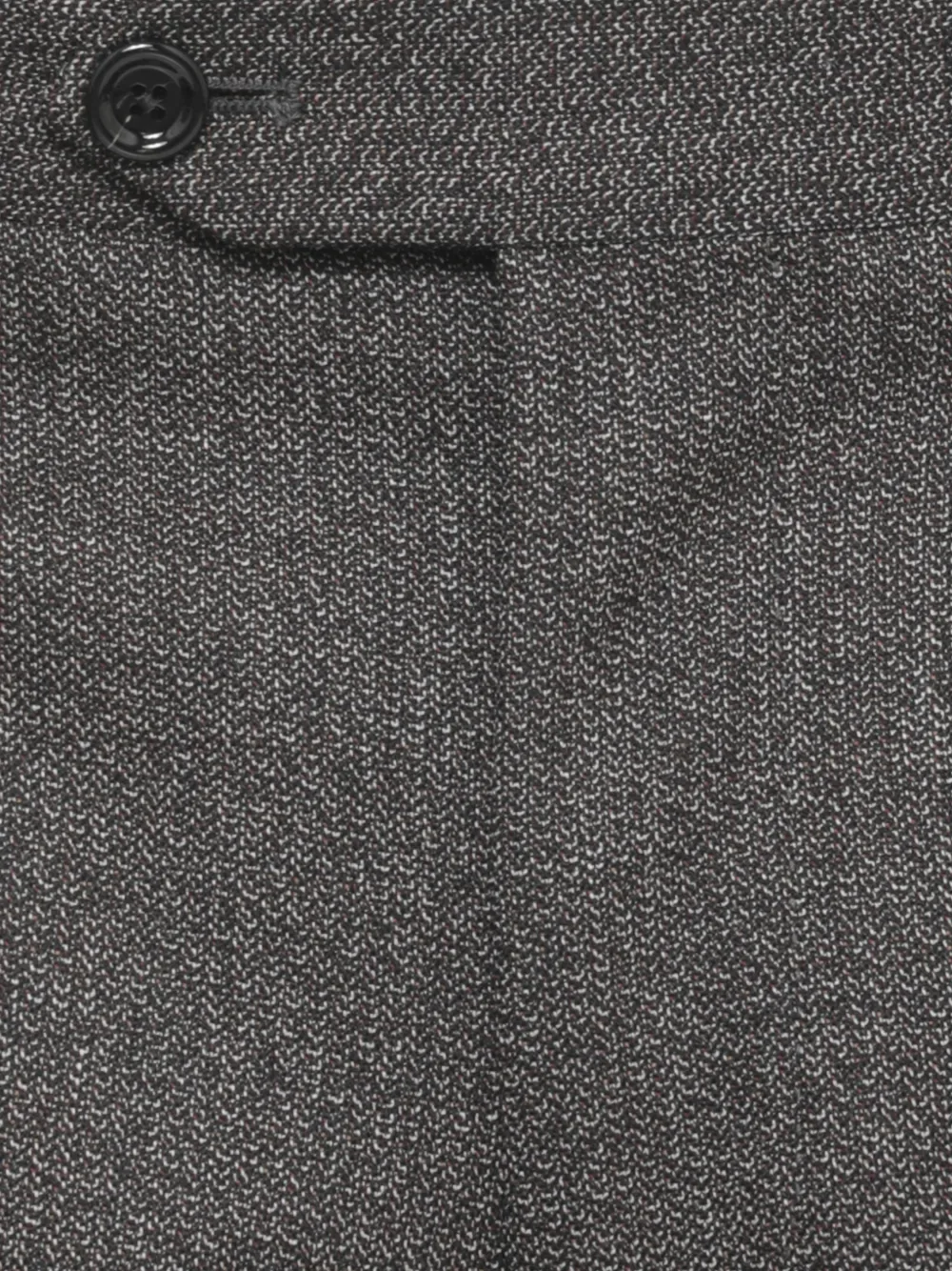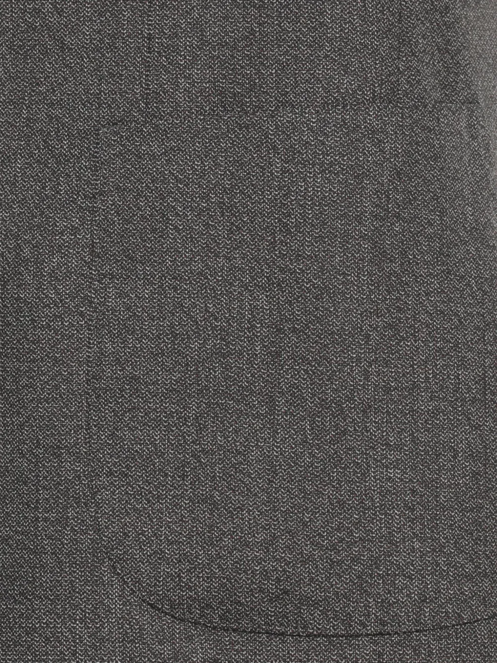 Пиджак серого цвета с узором "елочка": застежка на пуговицы, декоративная пуговица в виде цветка, три кармана, лацканы с вырезом.