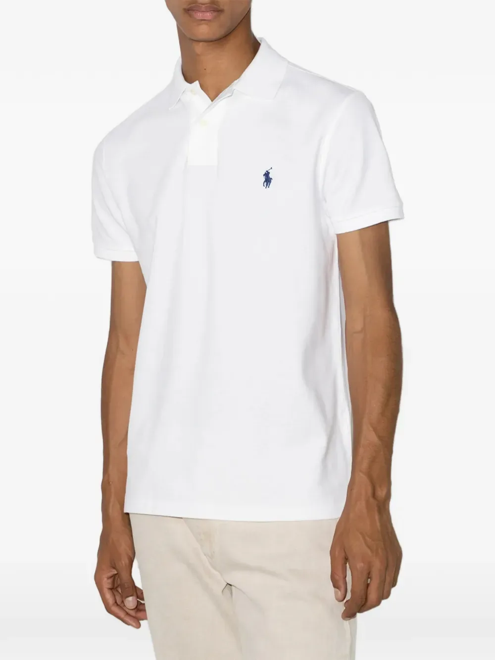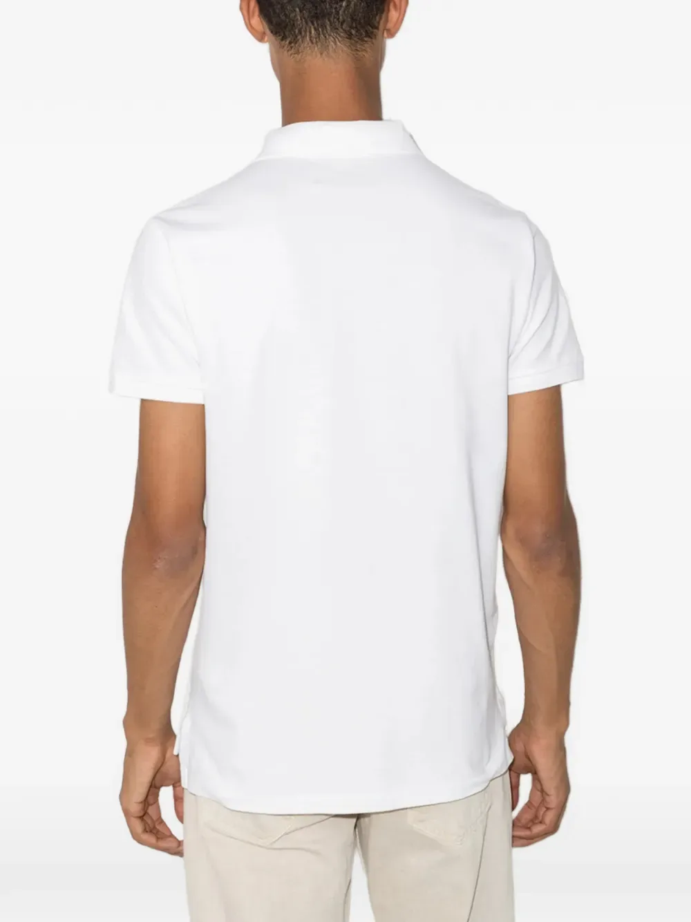 Белое поло с воротником, короткими рукавами, вышитым логотипом и застежкой на пуговицы