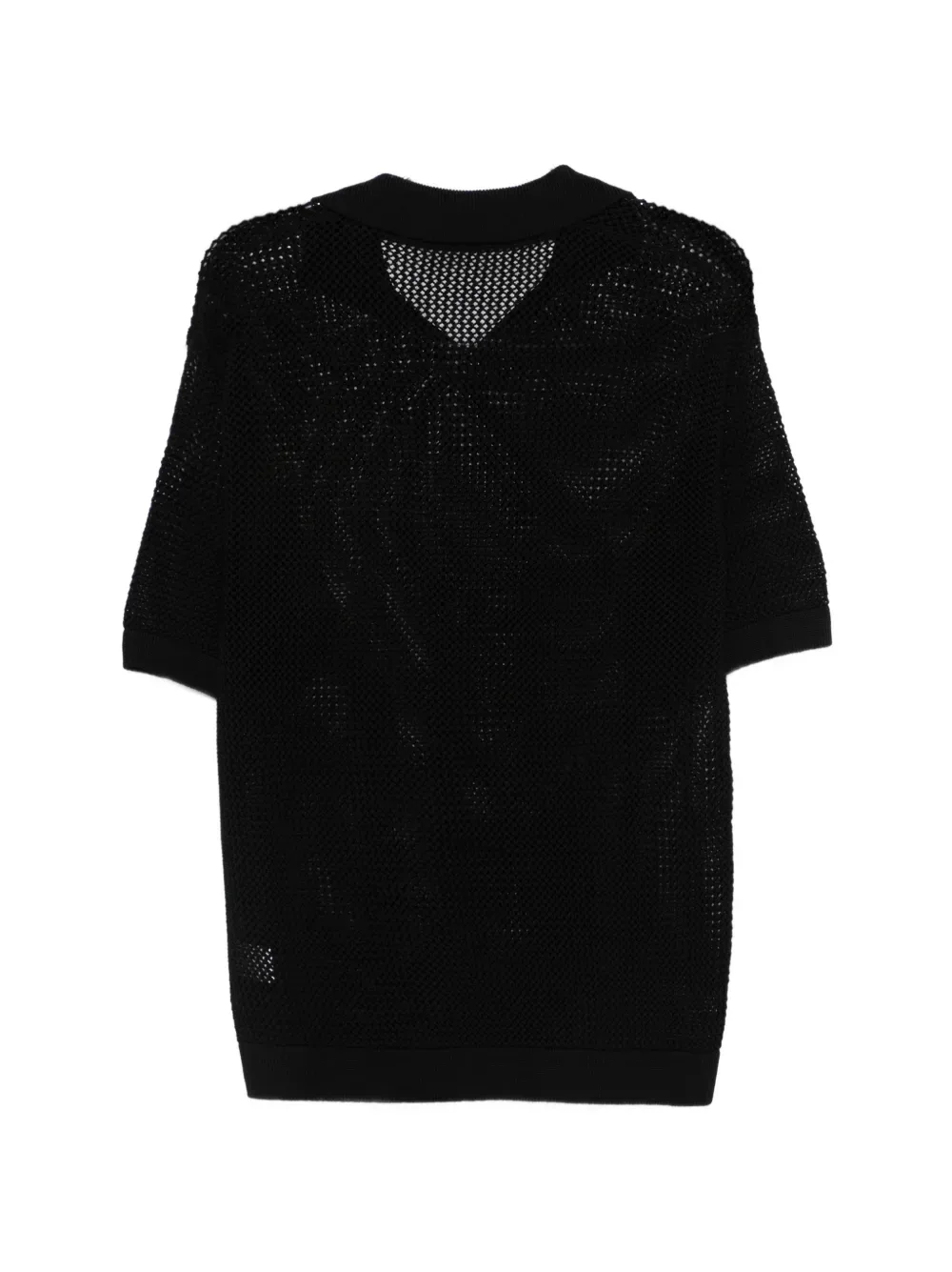 Черное поло с воротником, короткими рукавами, ребристой отделкой по краю и манжетам