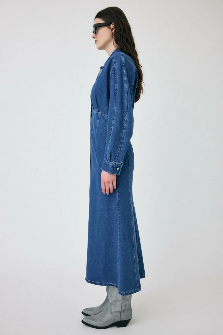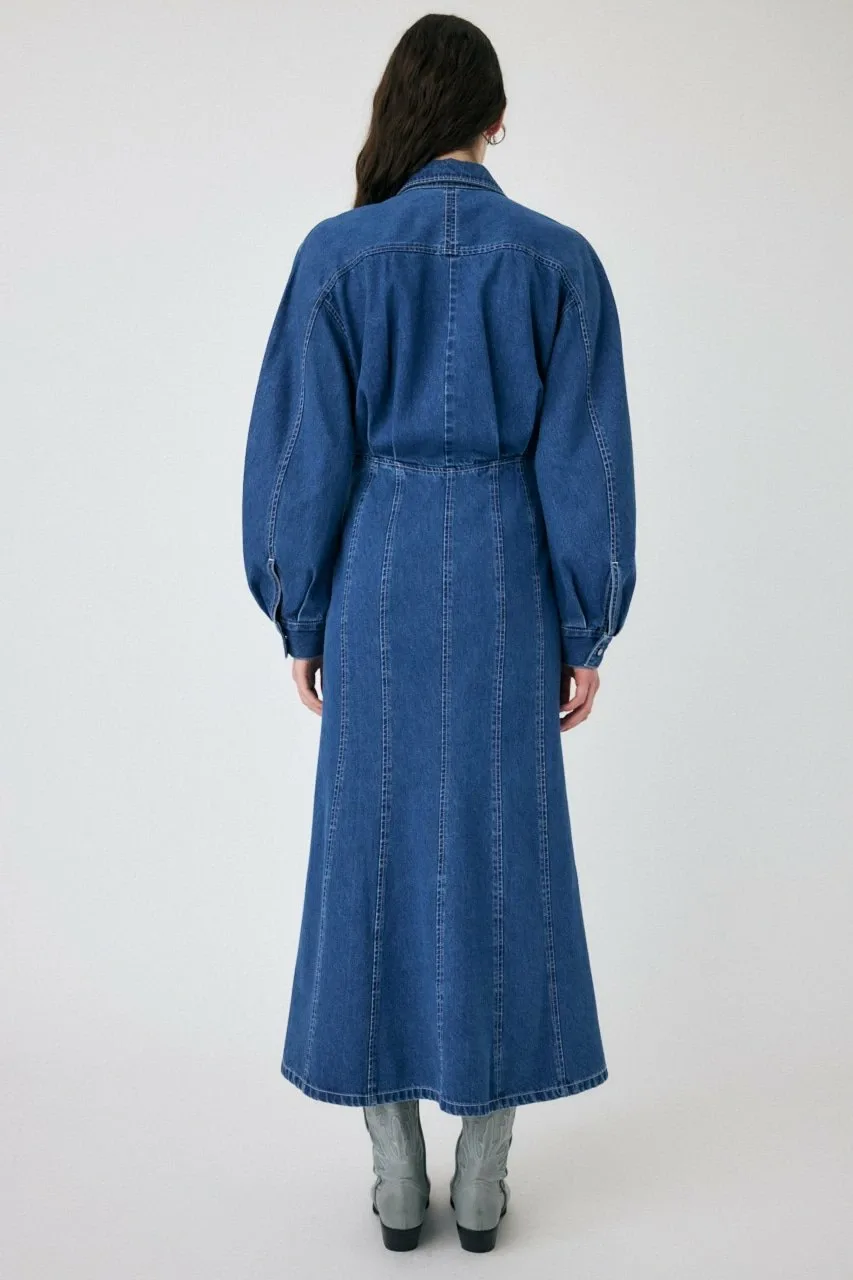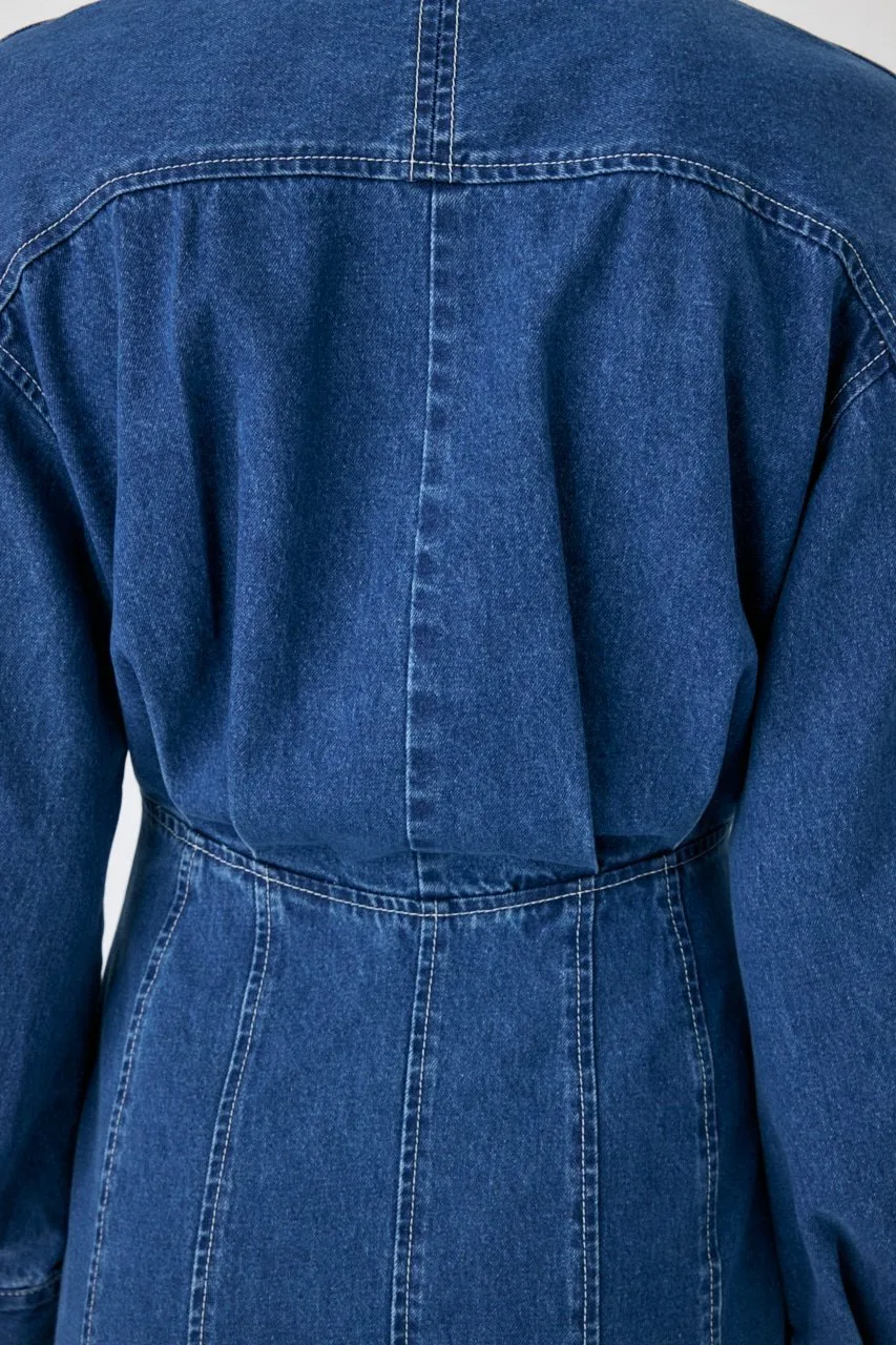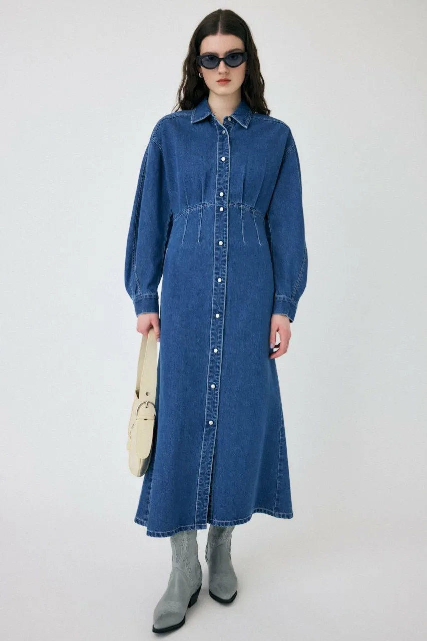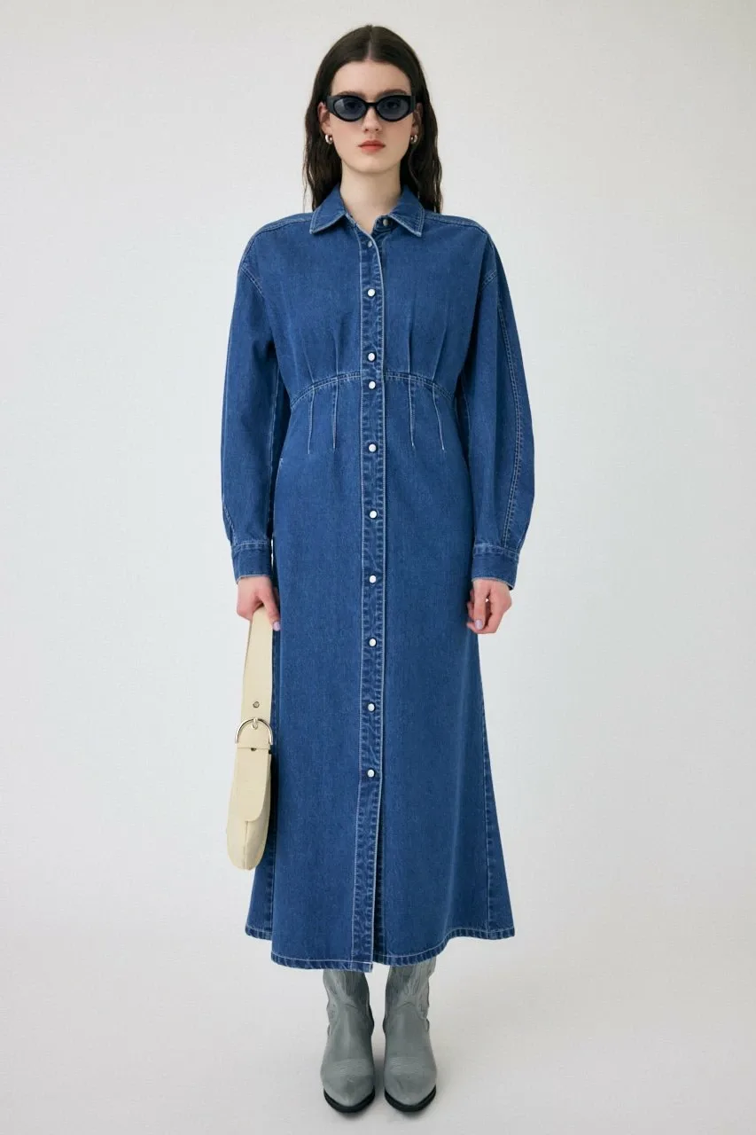 Джинсовое платье с силуэтом, облегающим талию.