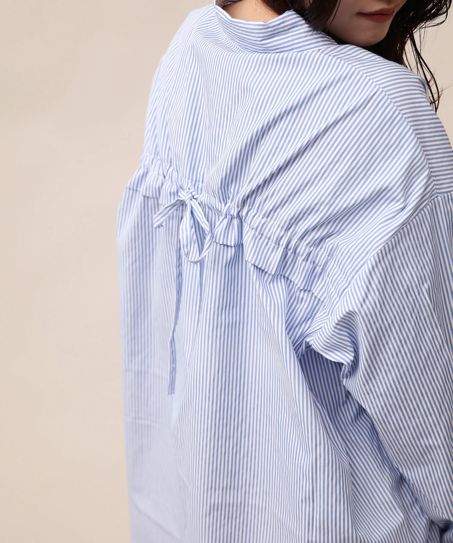 Спереди она выглядит как простая блузка, но сборки на спине придают ей уникальный и стильный вид.