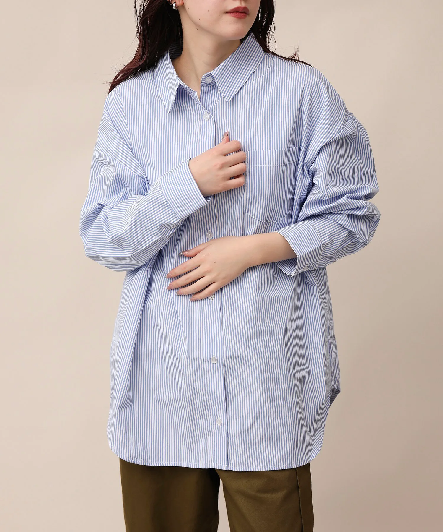 Она хорошо сочетается с брюками со складками по центру или зауженными брюками.