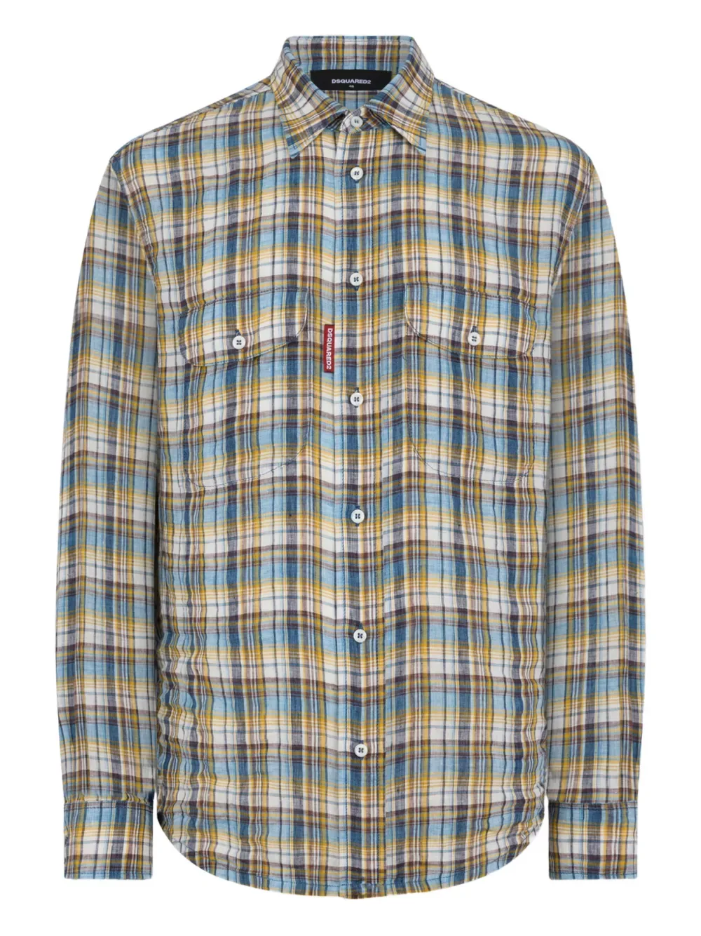 Льняная рубашка с клетчатым карманом DSQUARED2, синий