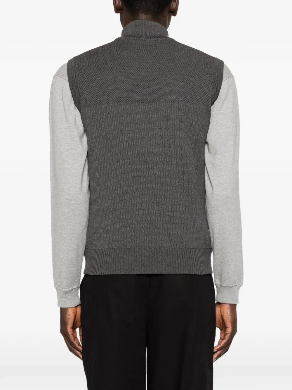 Серый стеганый жилет без рукавов на молнии с нашивкой-логотипом