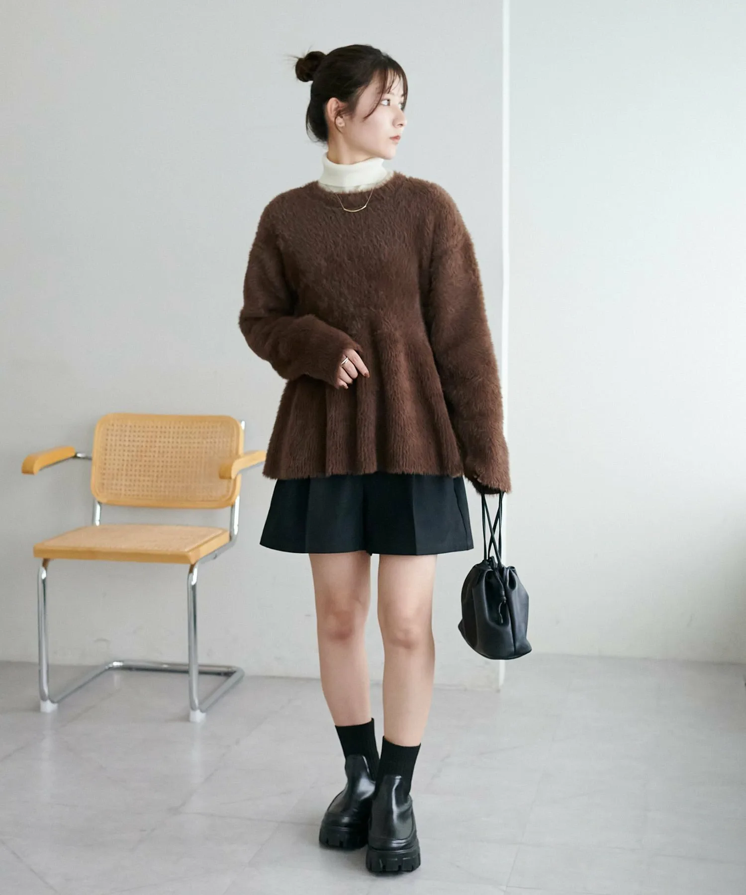 - Длина чуть ниже бедер, что позволяет легко создать баланс и выгодно подчеркнуть фигуру.◎