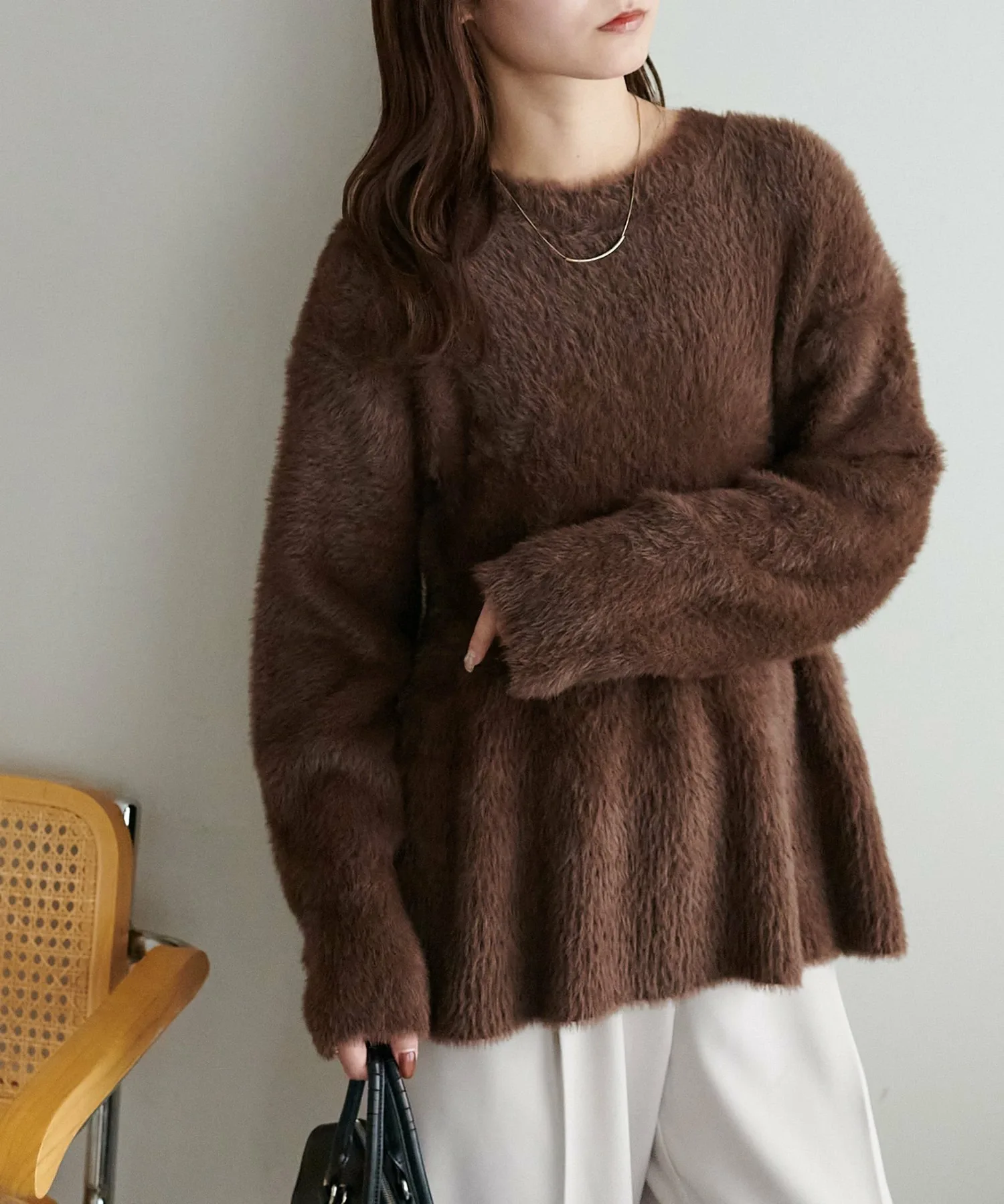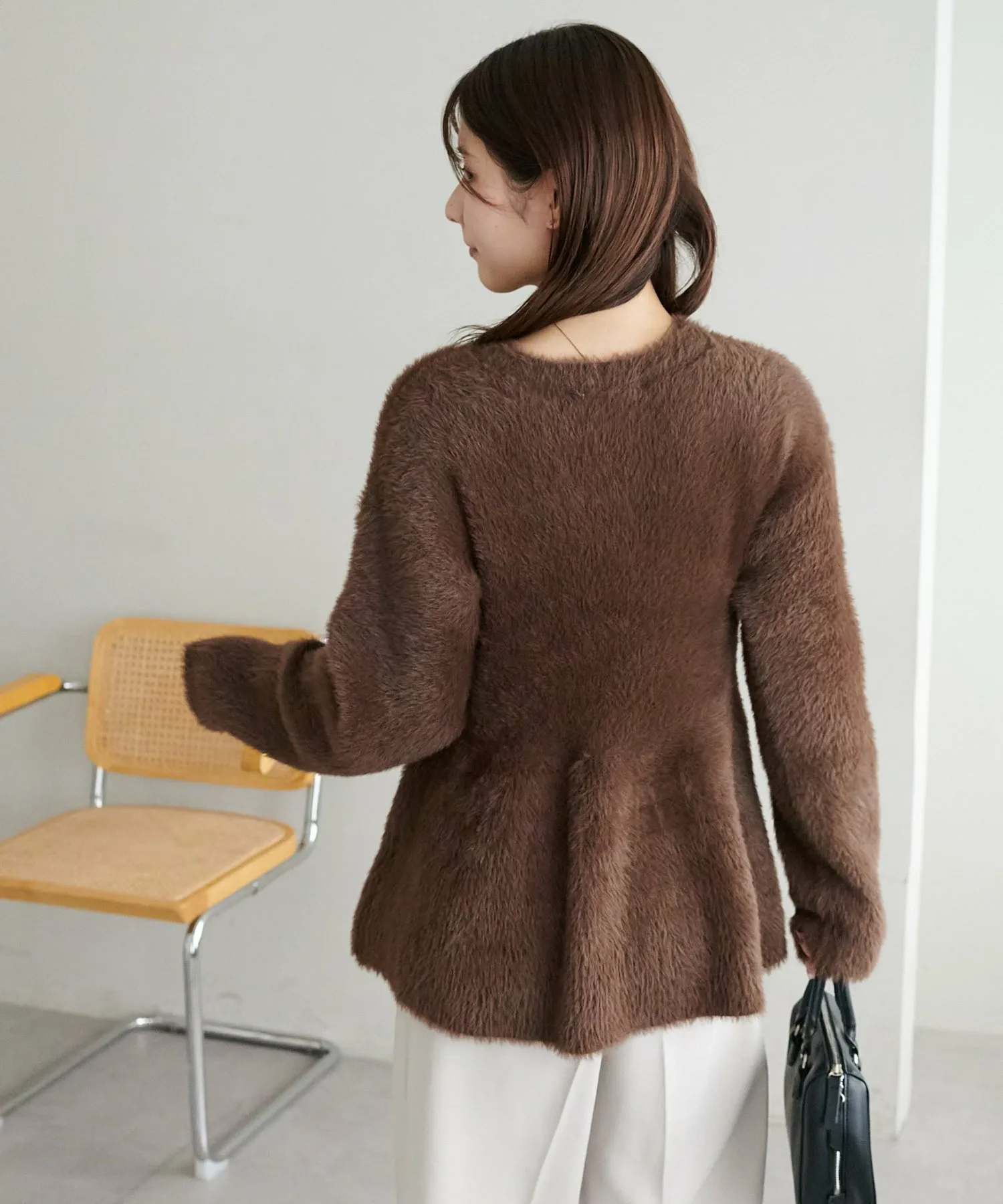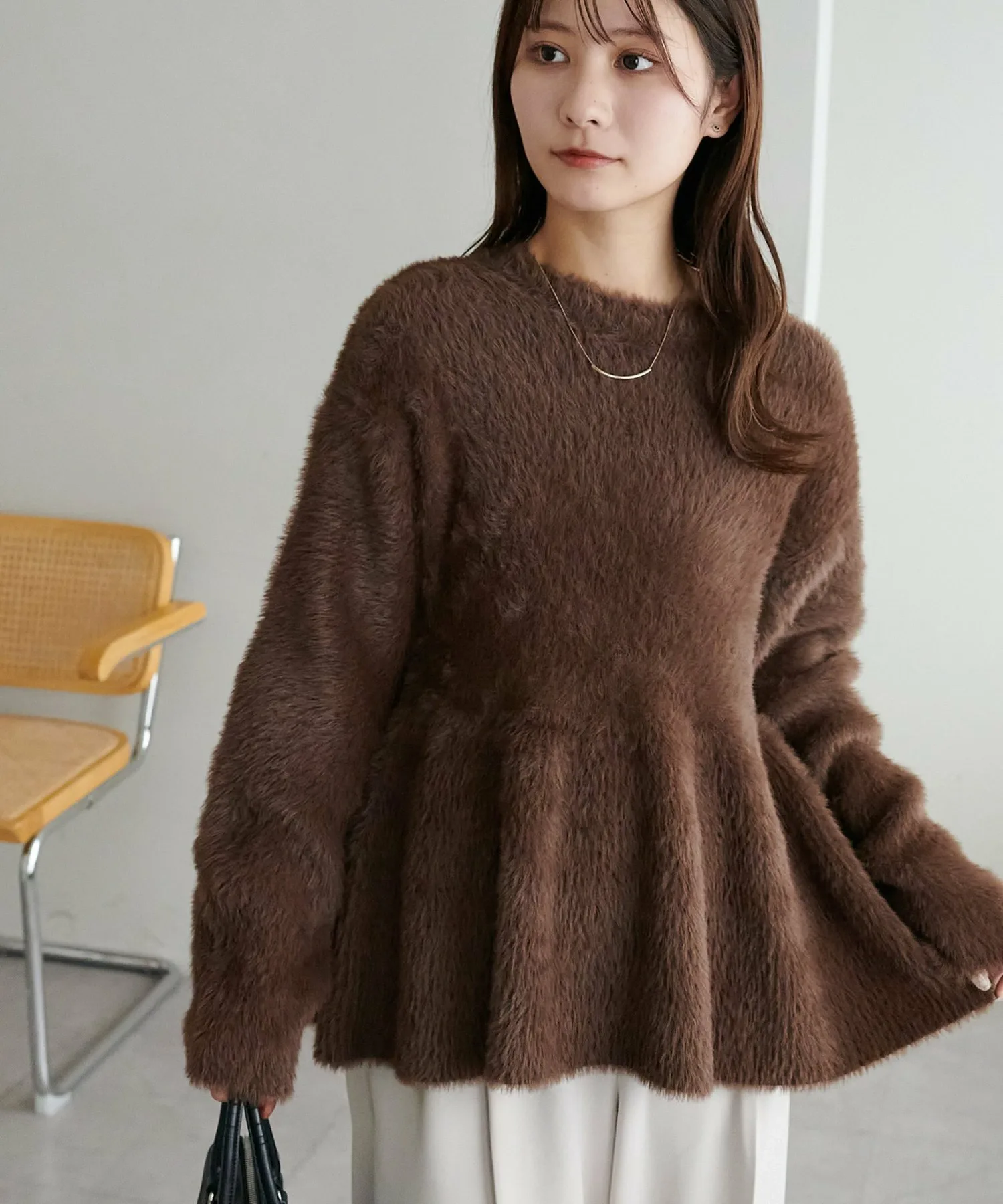 Трикотаж с баской из мягкого пушистого материала, который подчеркнет сезонное настроение.