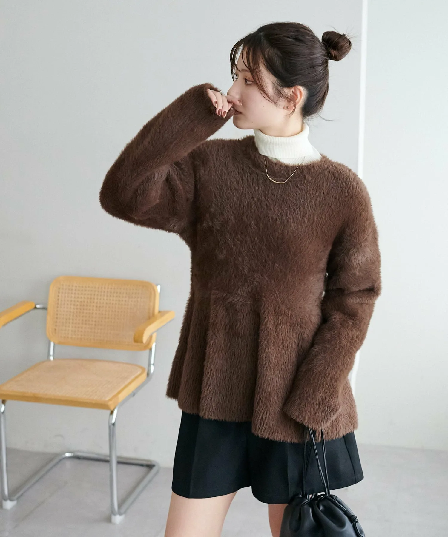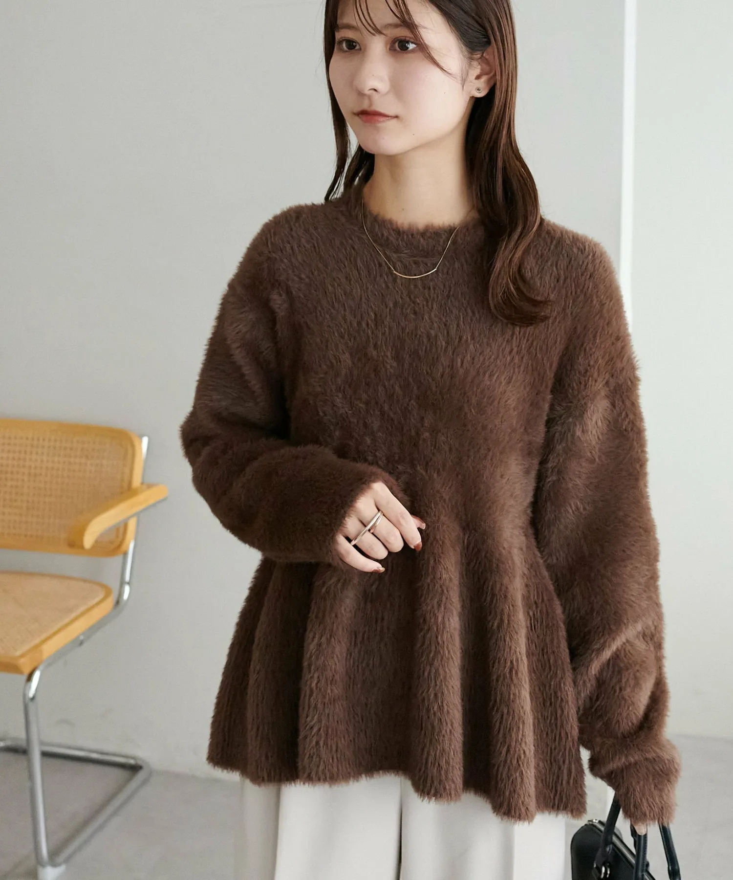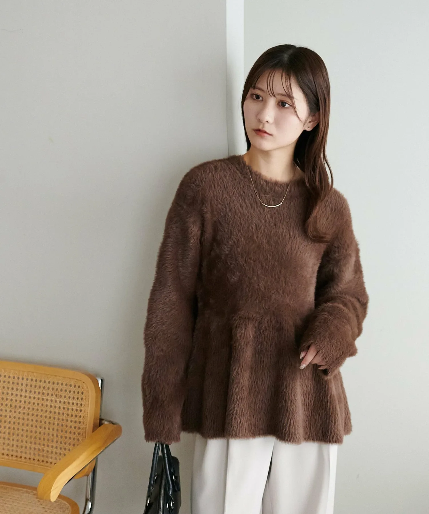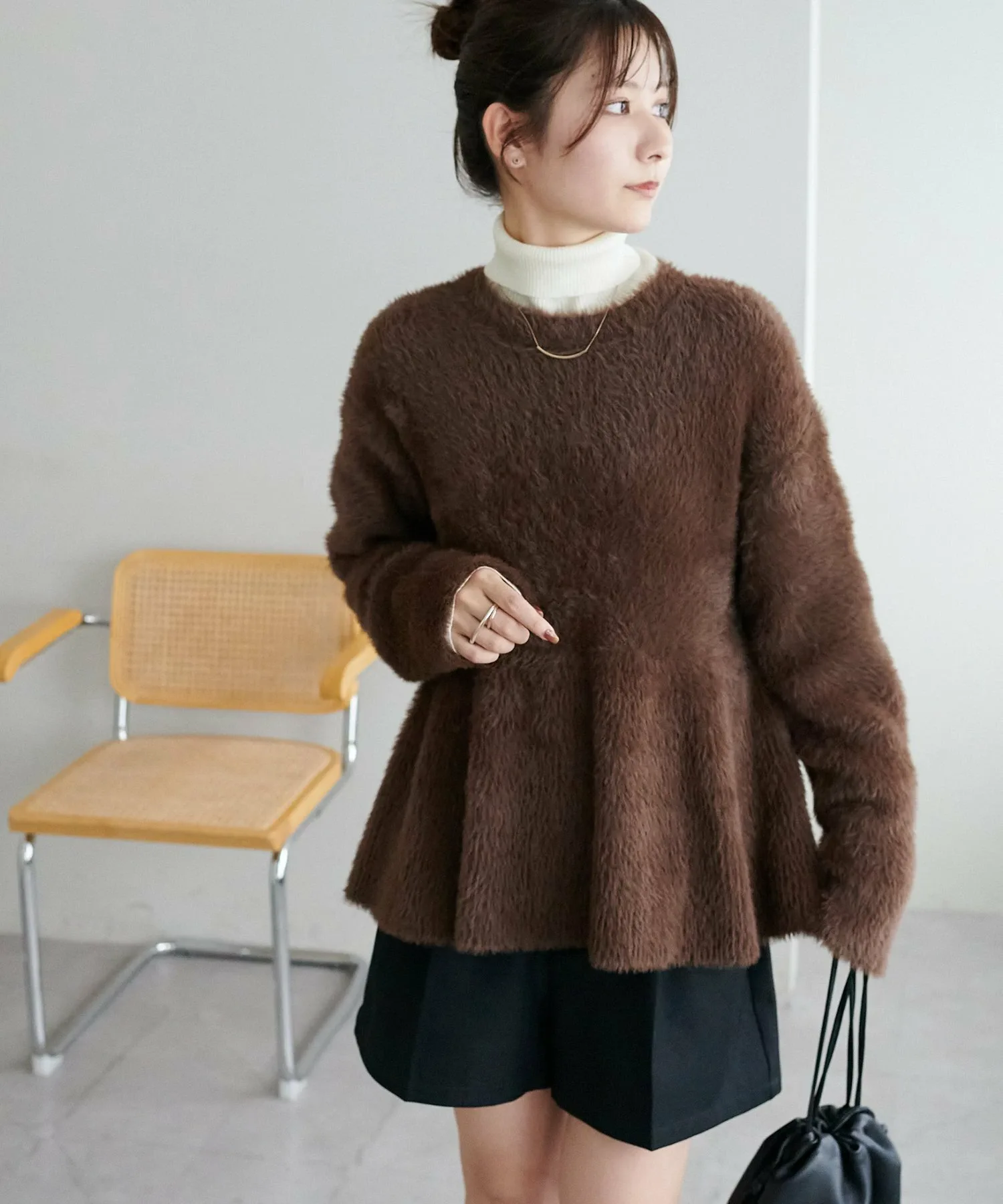 Трикотаж с баской из мягкого пушистого материала, который подчеркнет сезонное настроение.