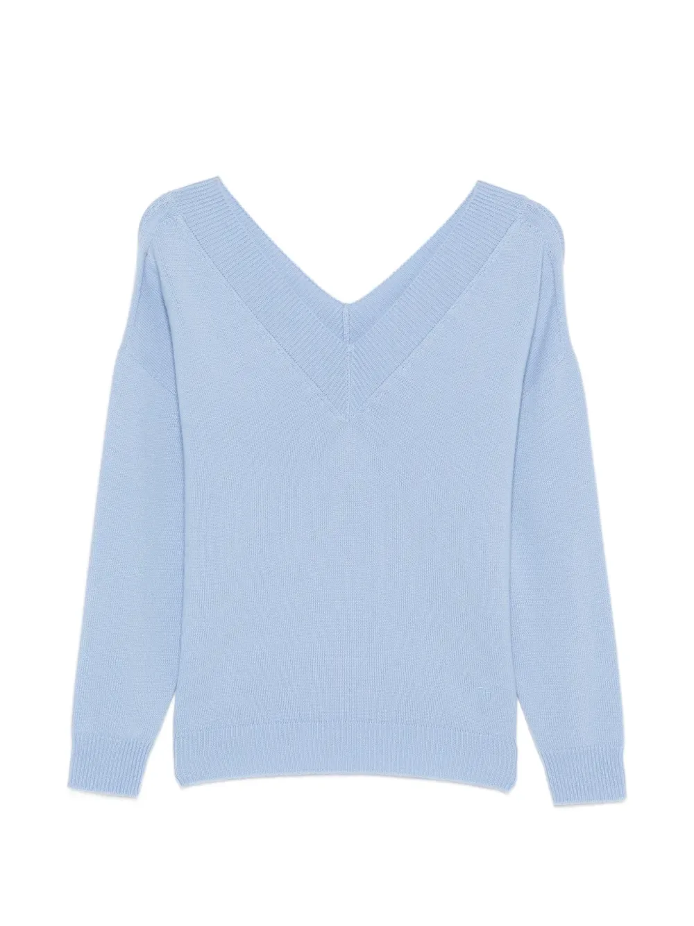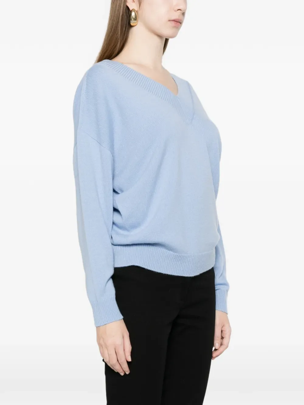 Минерально-голубой джемпер с V-образным вырезом, ребристыми деталями и длинными рукавами