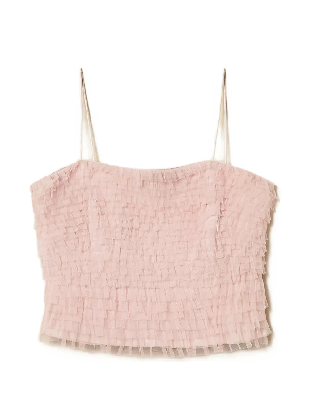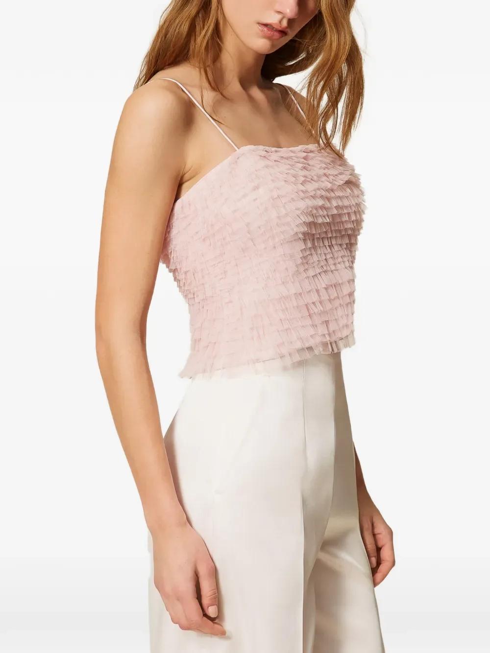 Розовый цвет, оборки, тонкие бретели, многослойный дизайн, квадратный вырез
