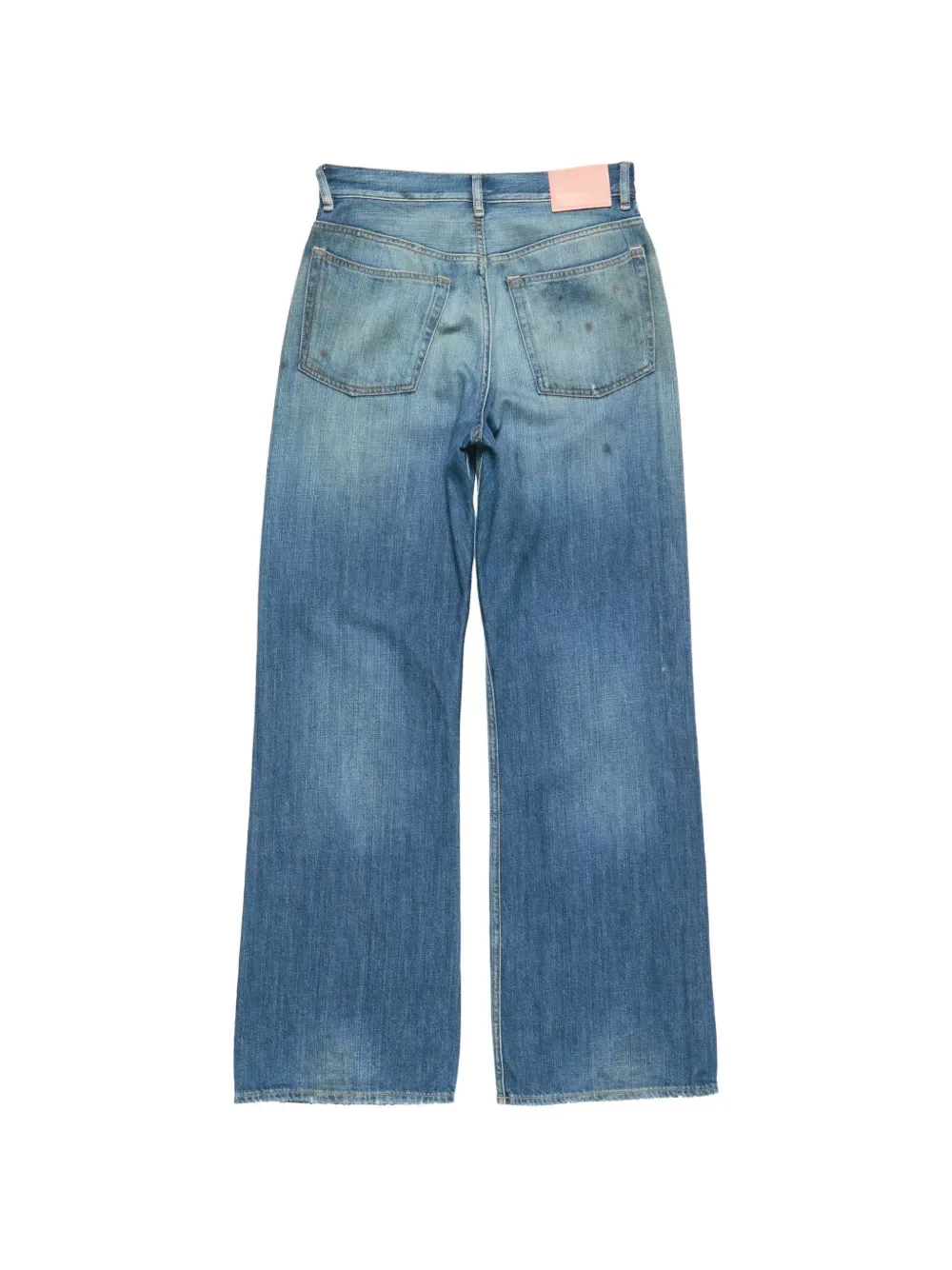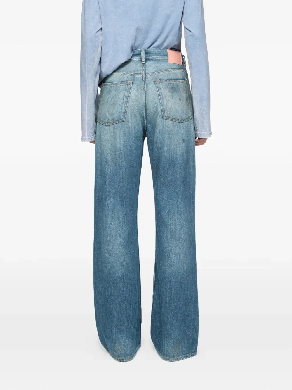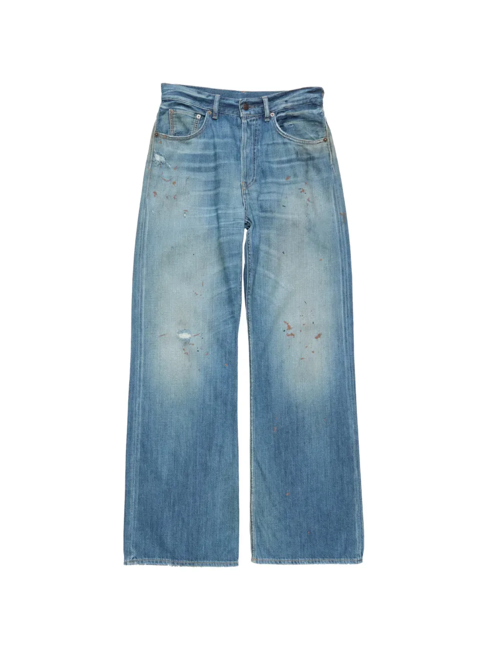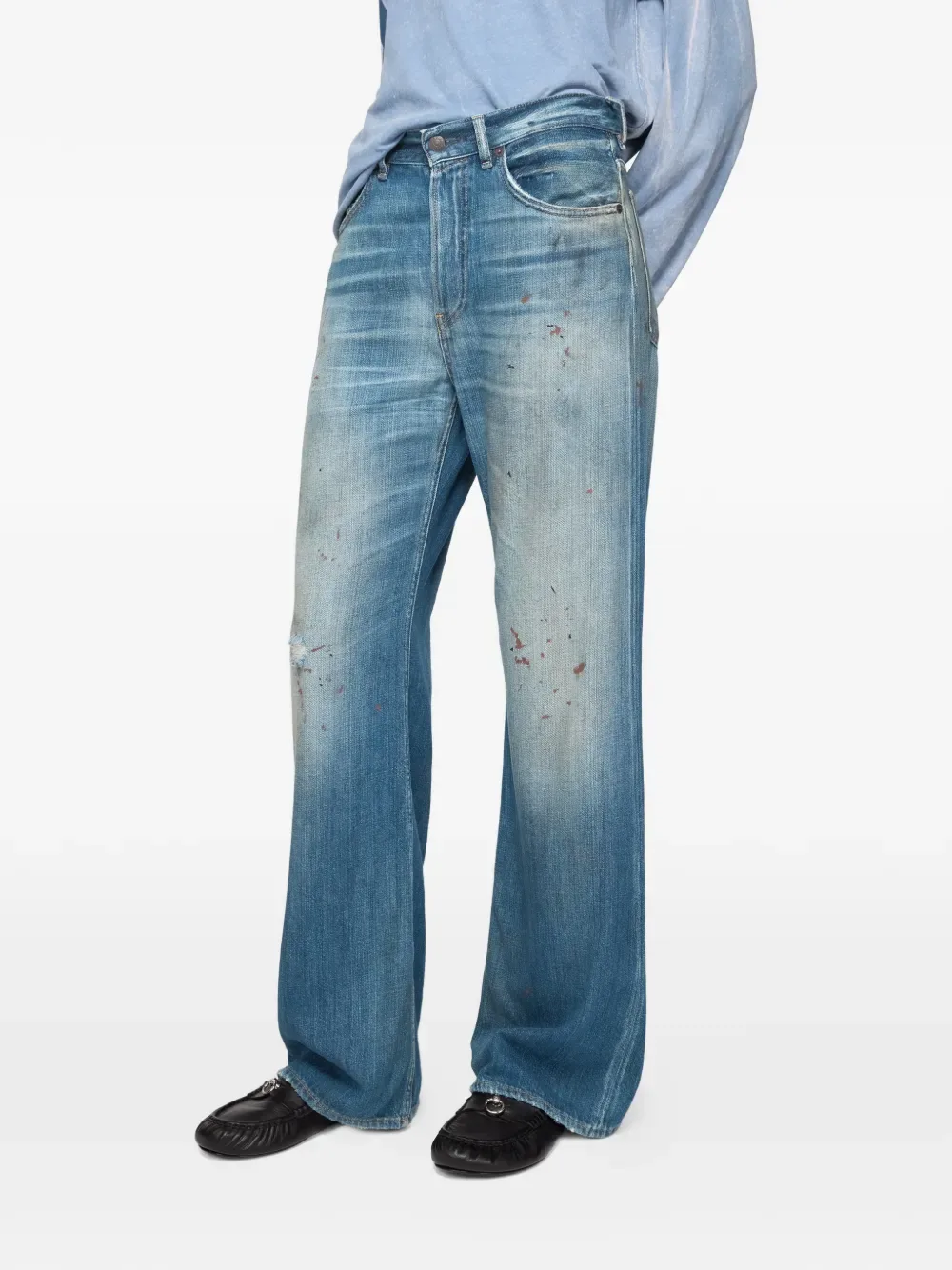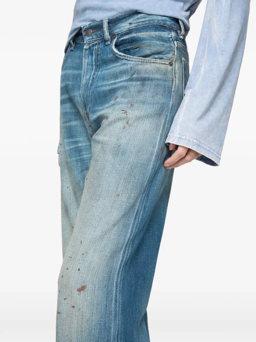 Синий патч, органический хлопок, детали с краской, эффект потертости, широкий крой брючин