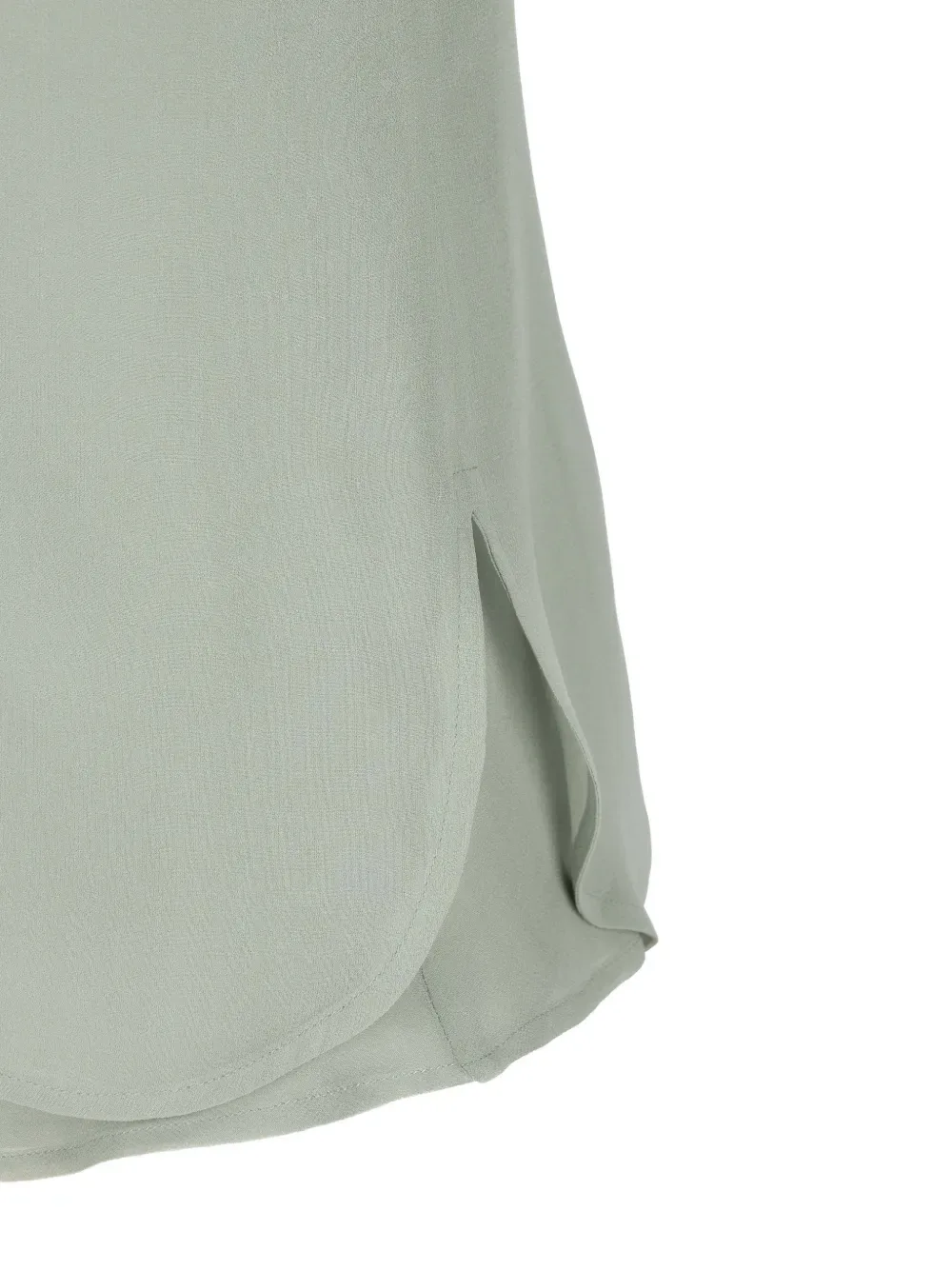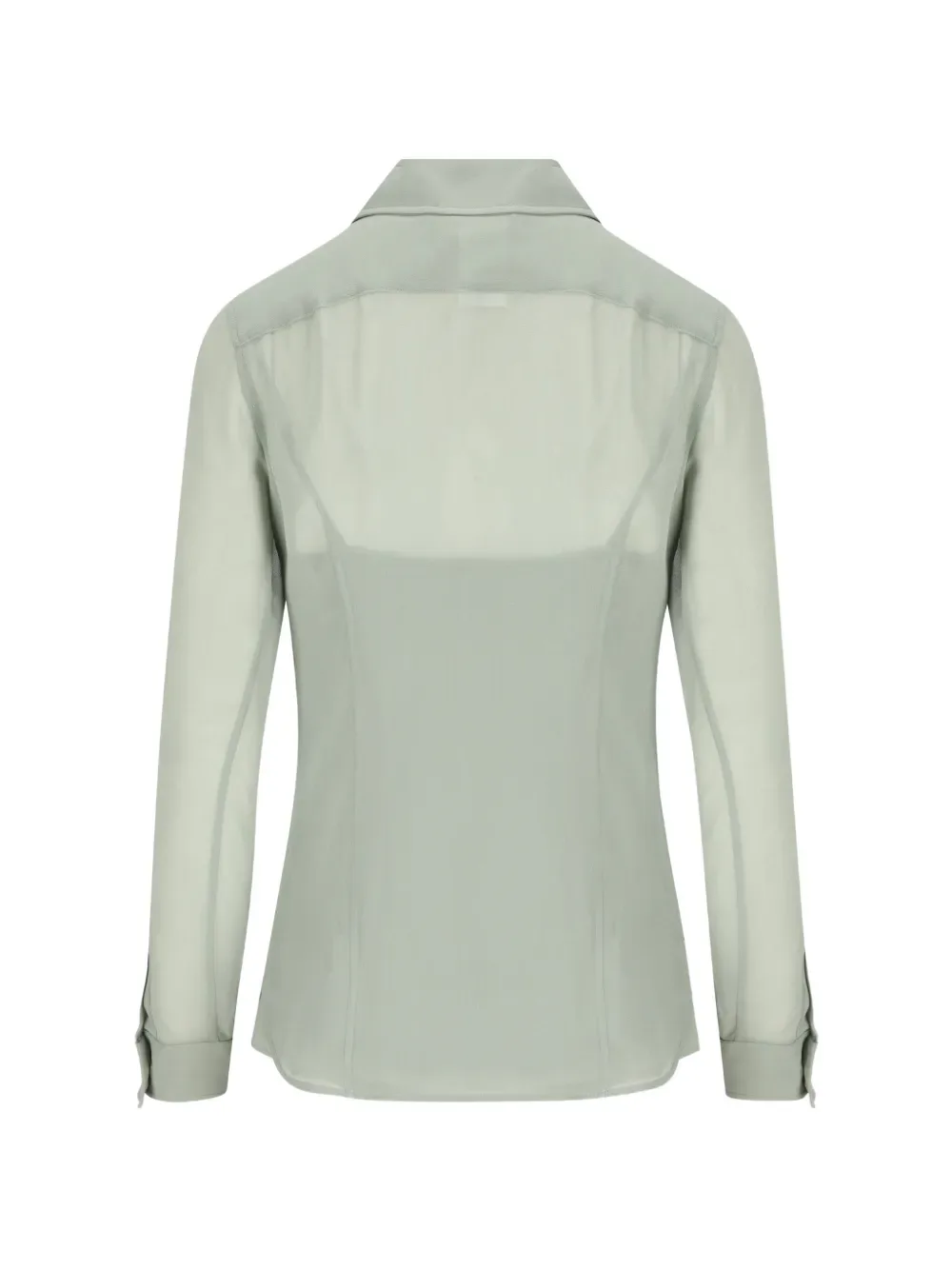 Светло-зеленая шелковая рубашка с застежкой на пуговицы, длинными рукавами и боковыми разрезами