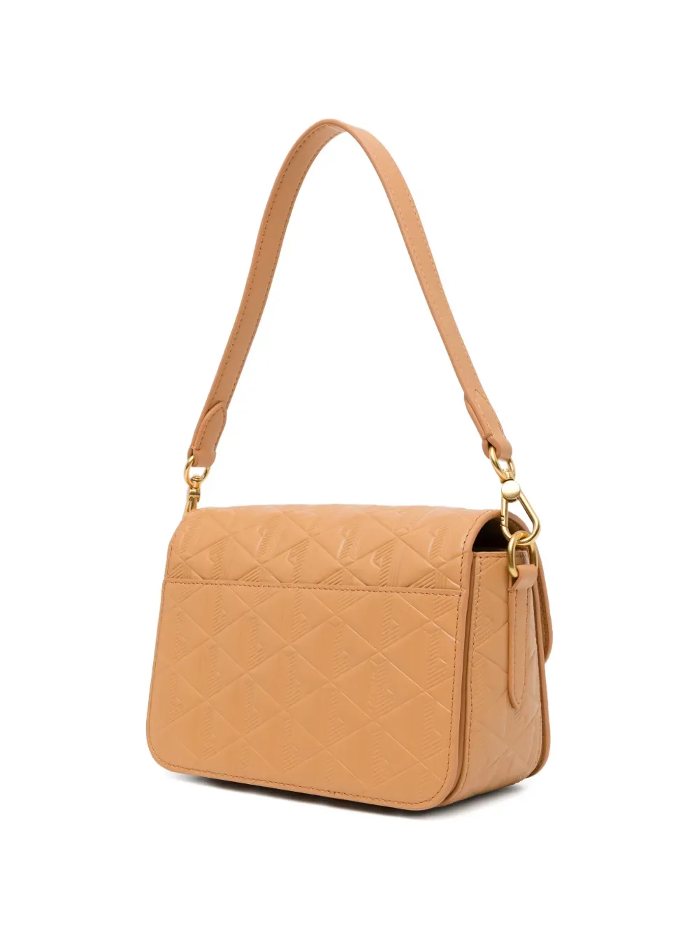 Бежевый, скрытая магнитная застежка, верхняя ручка, съемный плечевой ремень, логотип золотистого цвета