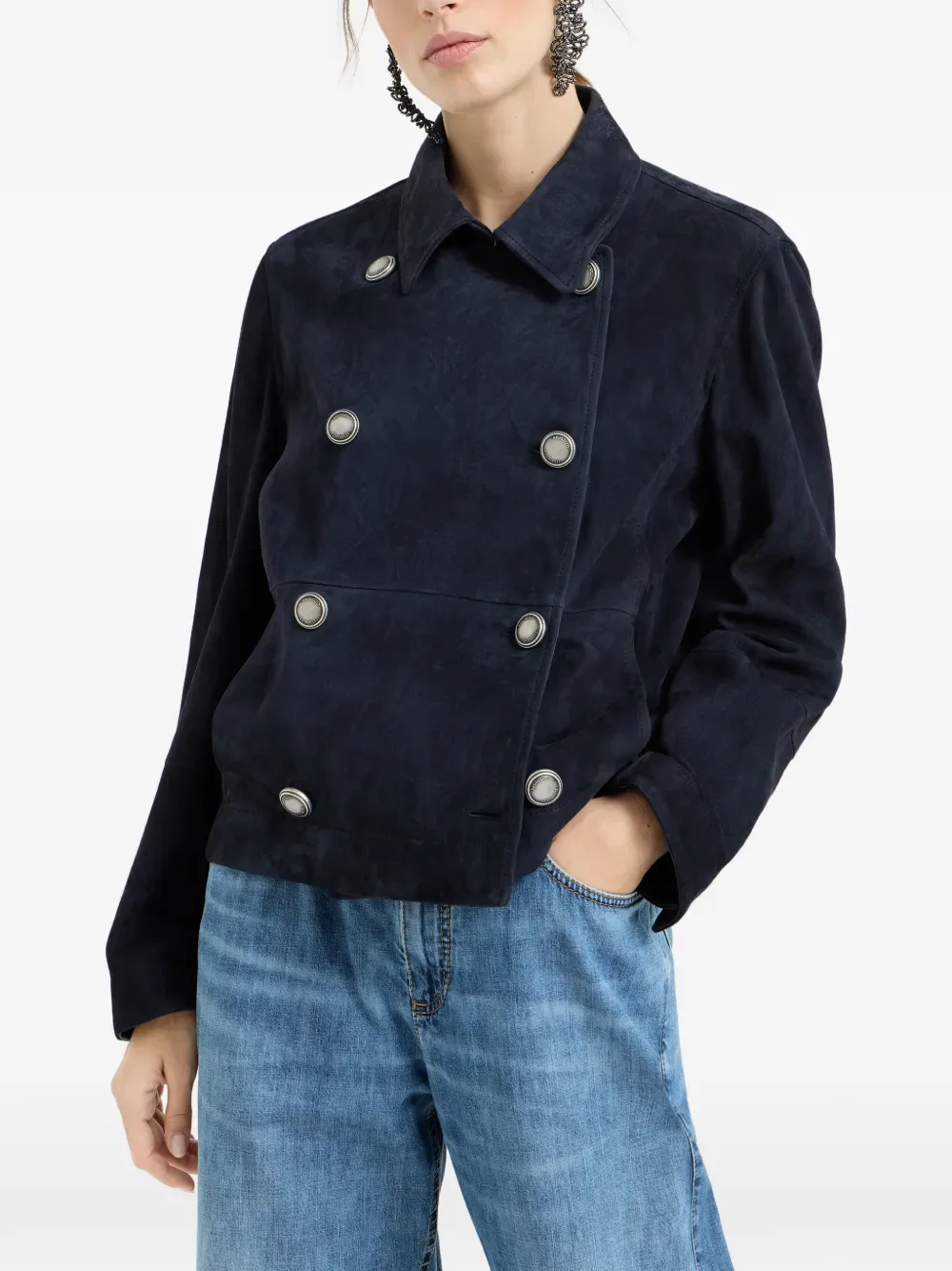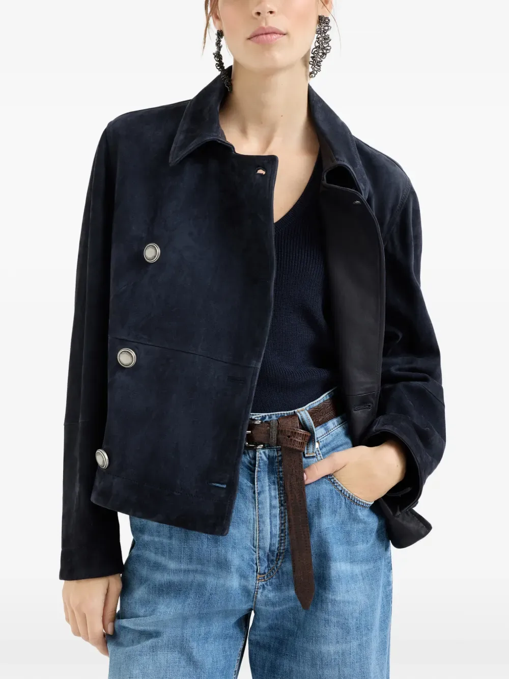 Двубортный блейзер с декором Monili Brunello Cucinelli, синий 749 771₽
